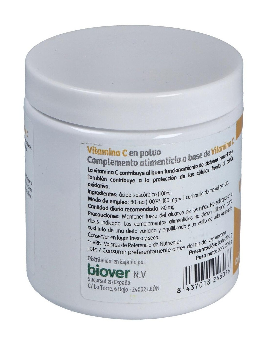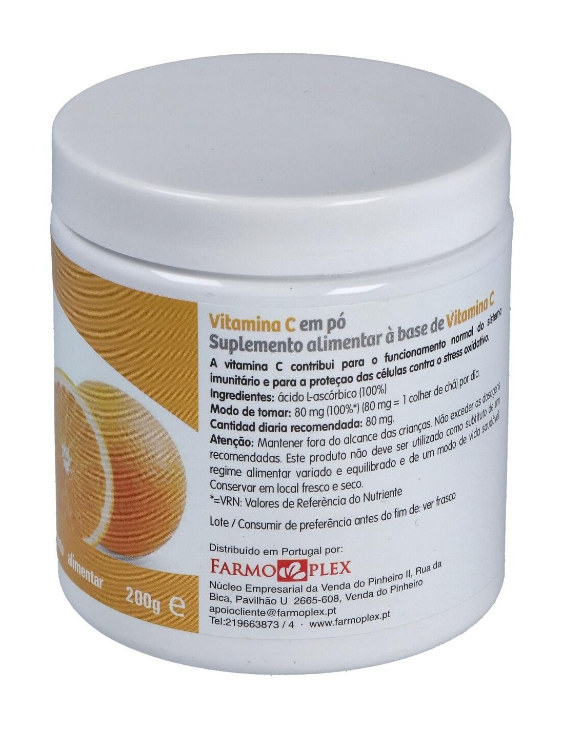 Complemento alimenticio a base de vitamina C (Ácido l-ascórbico) 100%. El producto presenta envase de 200g de contenido neto. El producto facilita la suplementación del organismo con vitamina, la cual contribuye a la formación normal de colágeno para el metabolismo energético normal. Funcionamiento normal de los vasos sanguíneos, huesos, cartílagos, encías, dientes y piel, e inclusive al funcionamiento normal del sistema nervioso y a la función psicológica normal.