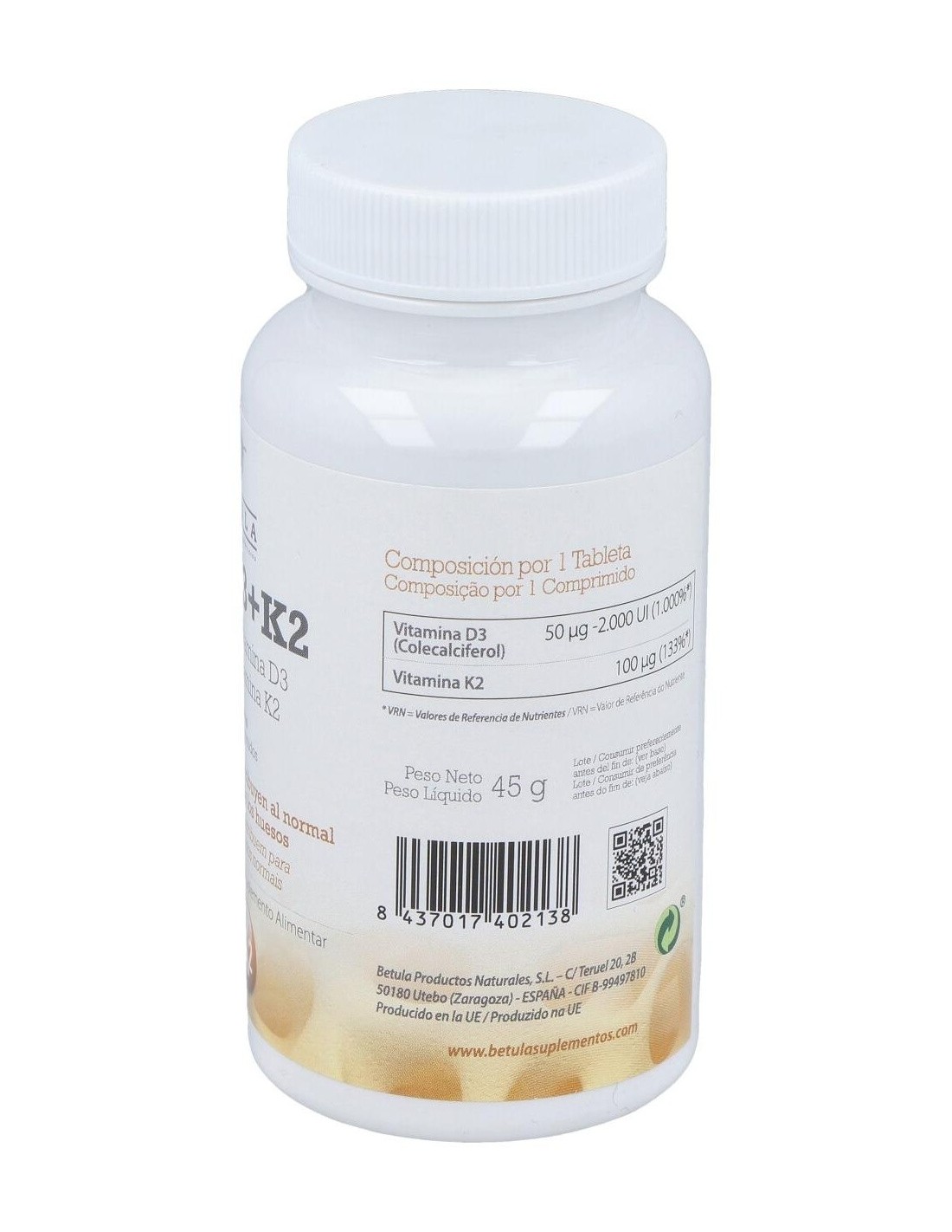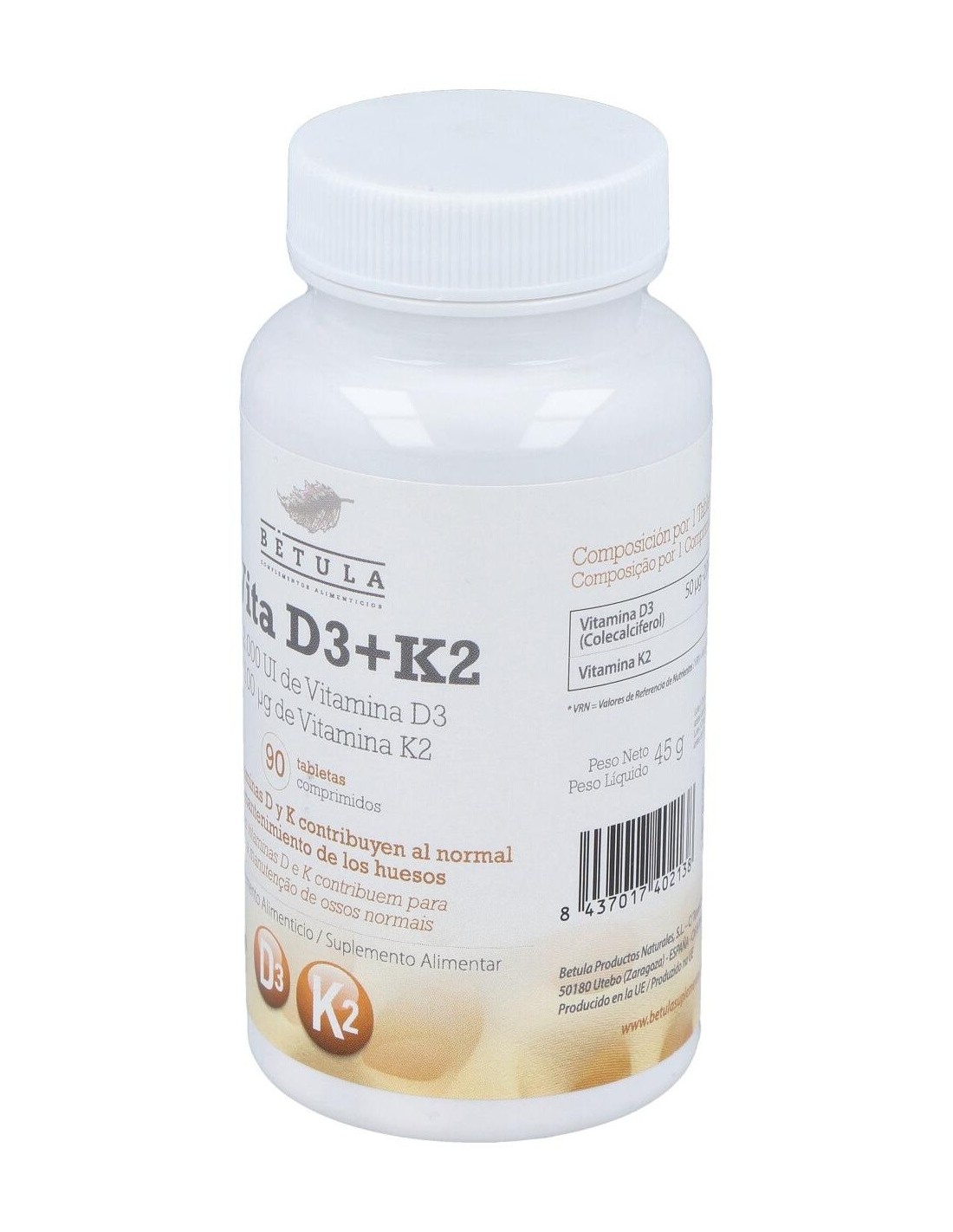 Complemento alimenticio formulado a base de vitamina D3 y vitamina K. Contribuye al mantenimiento de los huesos en condiciones normales. La sinergia de las vitaminas D y K interviene en la absorción y fijación del calcio. Apto para vegetarianos. Indicado para adultos.