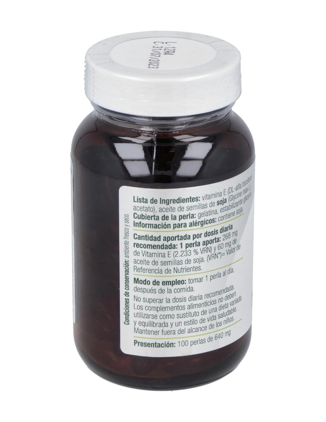 Vitamina E (DL- alpha tocopherol acetato), aceite de semillas de soja (Glycine max L.). Cubierta de la perla: gelatina, estabilizante glicerol.