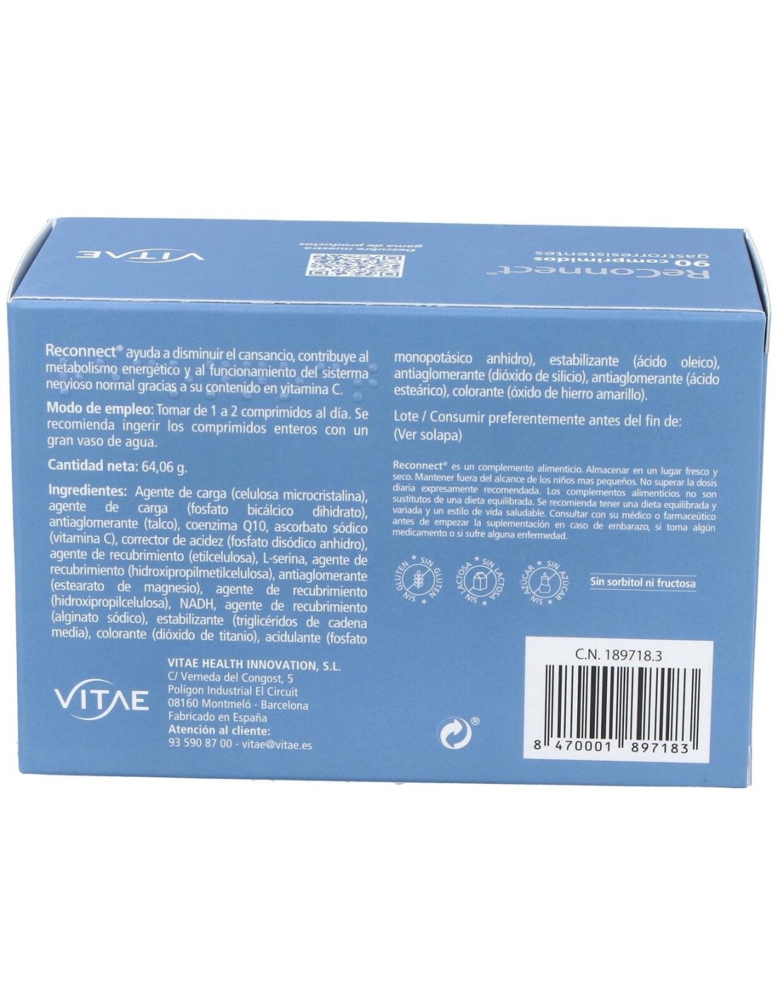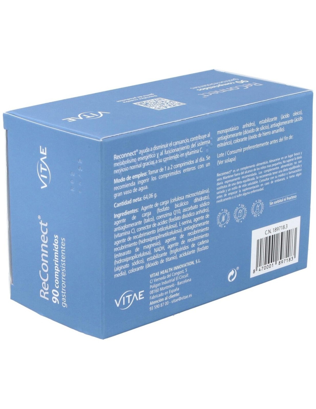 Vitae Reconnect 90cap es una combinación a base de NADH (Co-E1), coenzima Q10, serina y vitamina C, que gracias a la sinergia de sus componentes ayuda a reforzar el rendimiento físico y cognitivo.