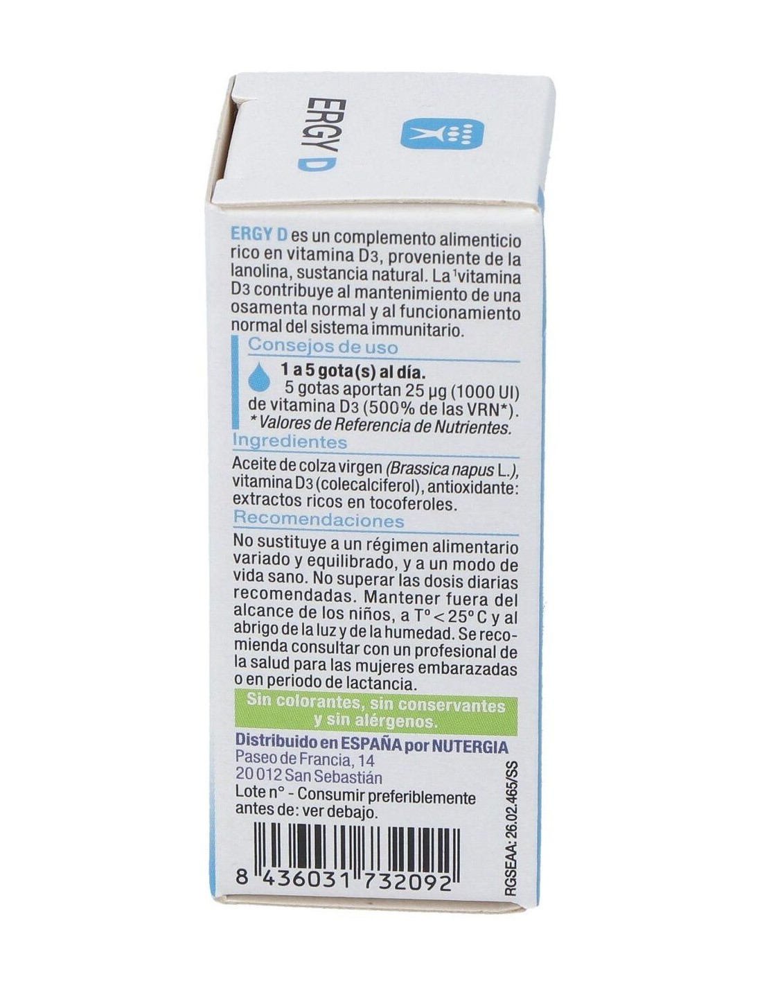 Aceite de colza virgen de 1ª presión en frío, vitamina D3 (colecalciferol), antioxidante: vitamina E de origen natural.