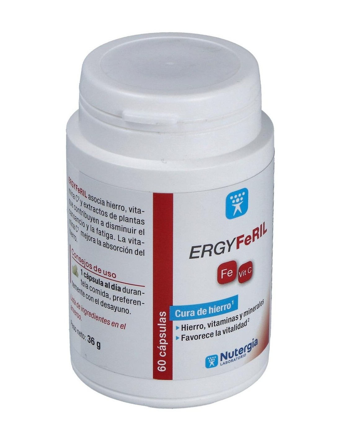 Nutergia ergyferil es un complemento alimenticio que aporta hierro y nutrientes que aseguran una correcta absorción en el organismo. Formulado con una asociación de 8 vitaminas, 4 minerales y 3 plantas actúa de ayuda en estados de carencia o deficiencia de hierro.