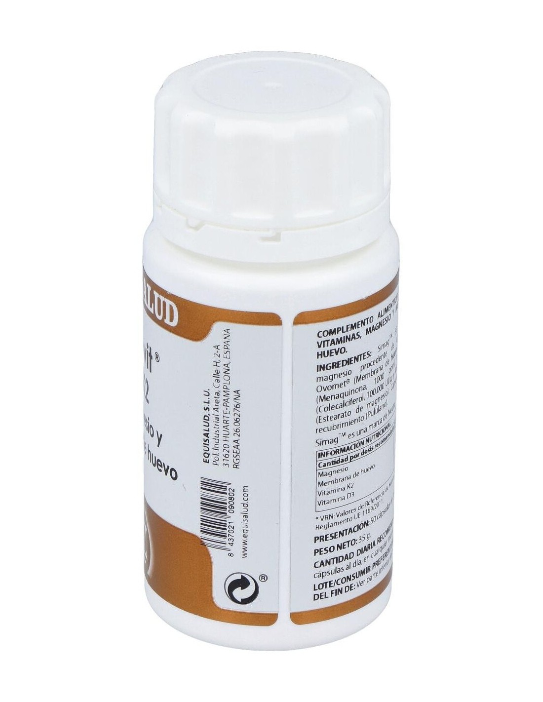Complemento alimenticio en cápsulas que está especialmente ideado para ayudar al mantenimiento normal de los huesos, gracias a su compuesto formulado a base de magnesio, membrana de huevo, vitamina K2 y vitamina D3. No está recomendado para personas que toman anticoagulantes de cumarina.
