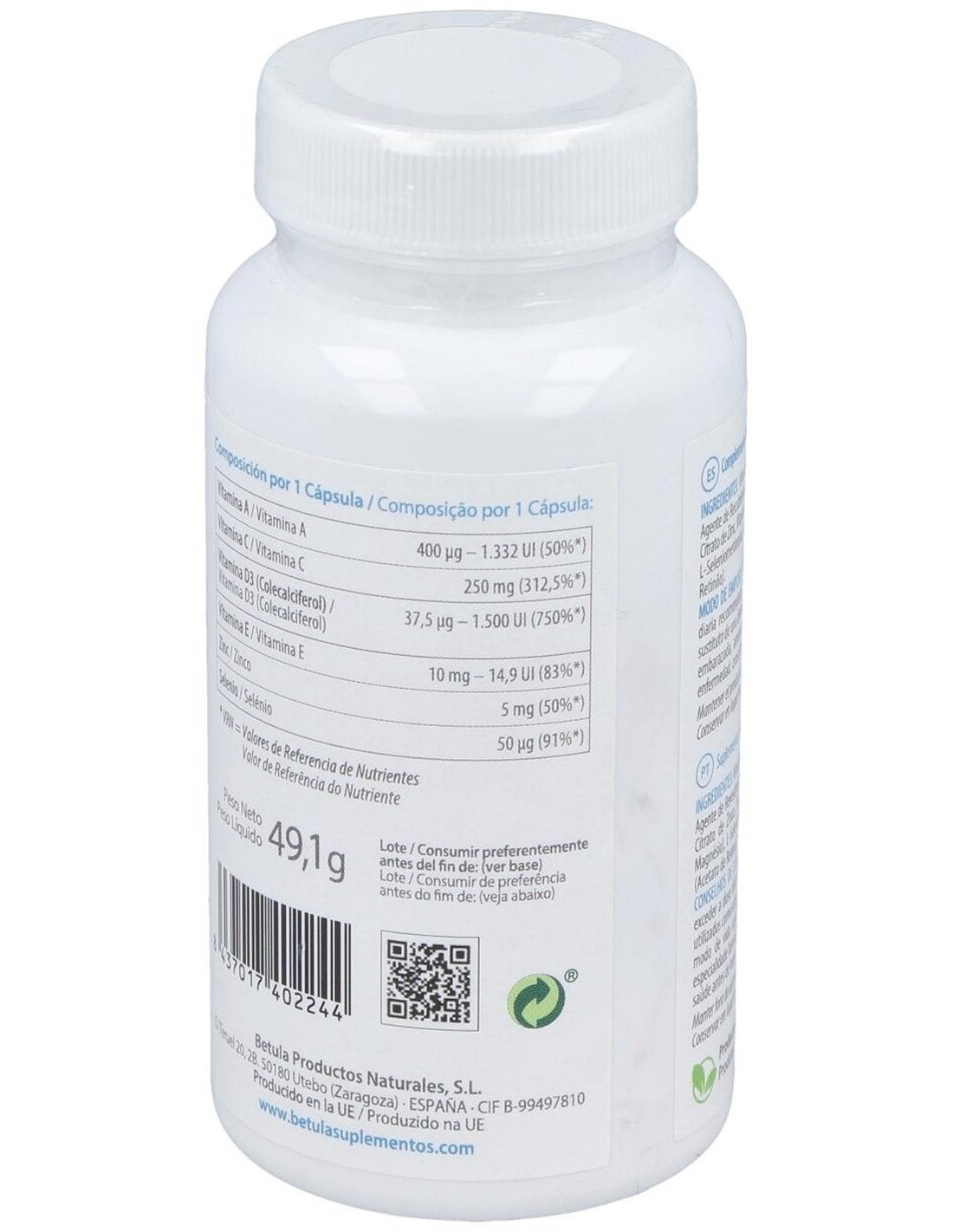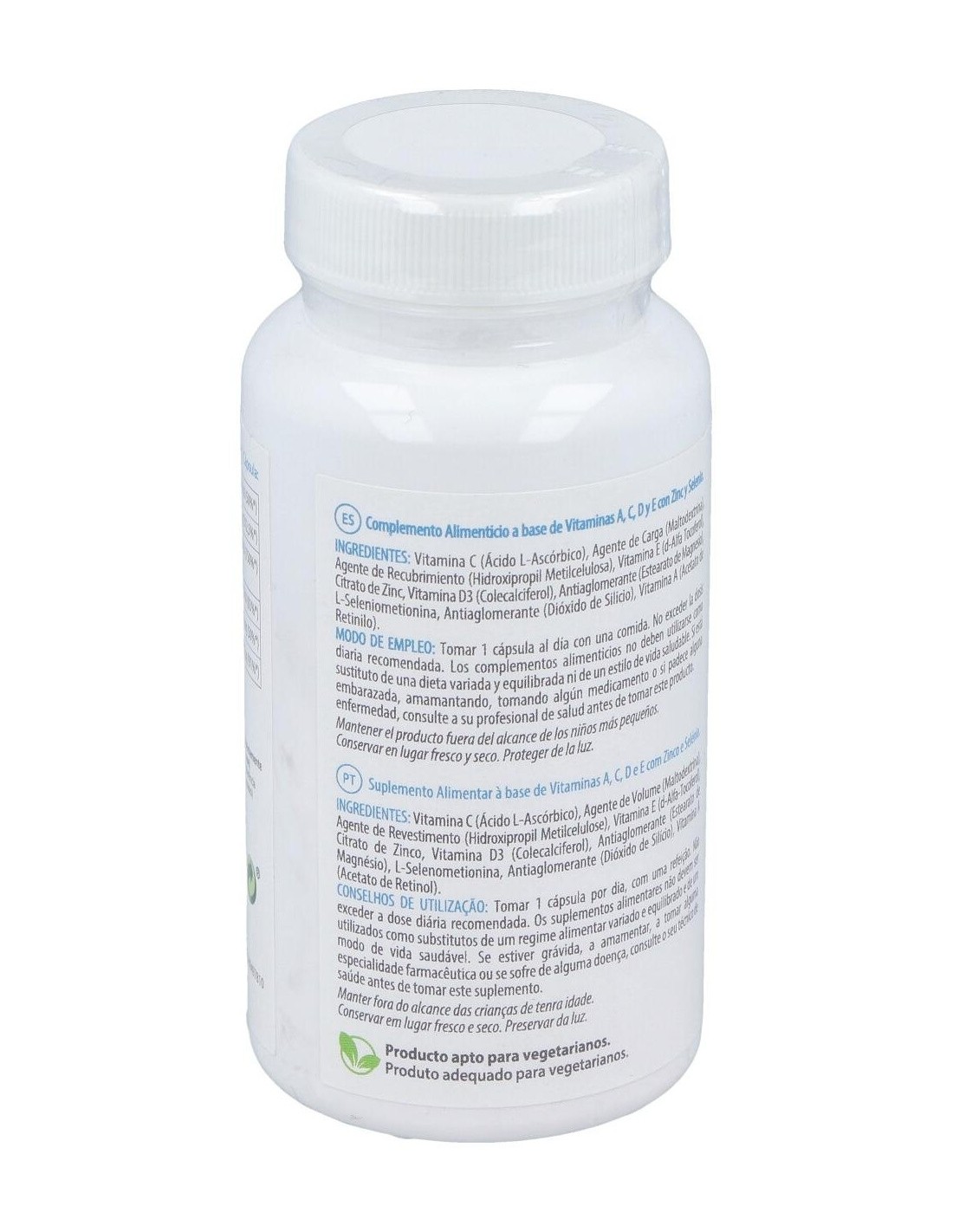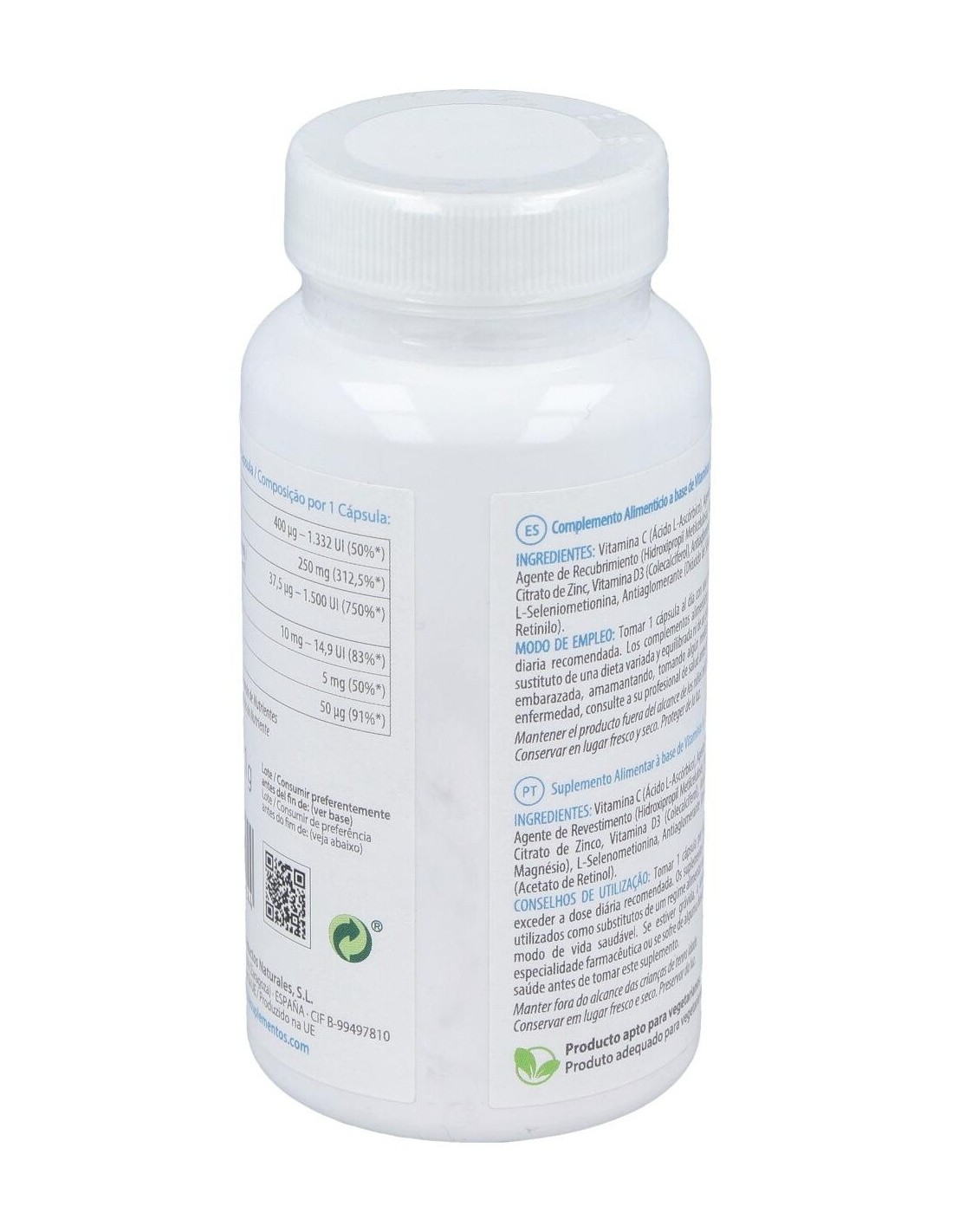 Vitamina C (Ácido L-Ascórbico), Agente De Carga (Maltodextrina), Agente De Recubrimiento (Hidroxipropil Metilcelulosa), Vitamina E (D-Alfa Tocoferol), Citrato De Zinc, Vitamina D3 (Colecalciferol), Antiaglomerante (Estearato De Magnesio), L-Seleniometionina, Antiaglomerante (Dióxido De Silicio), Vitamina A (Acetato De Retinilo).