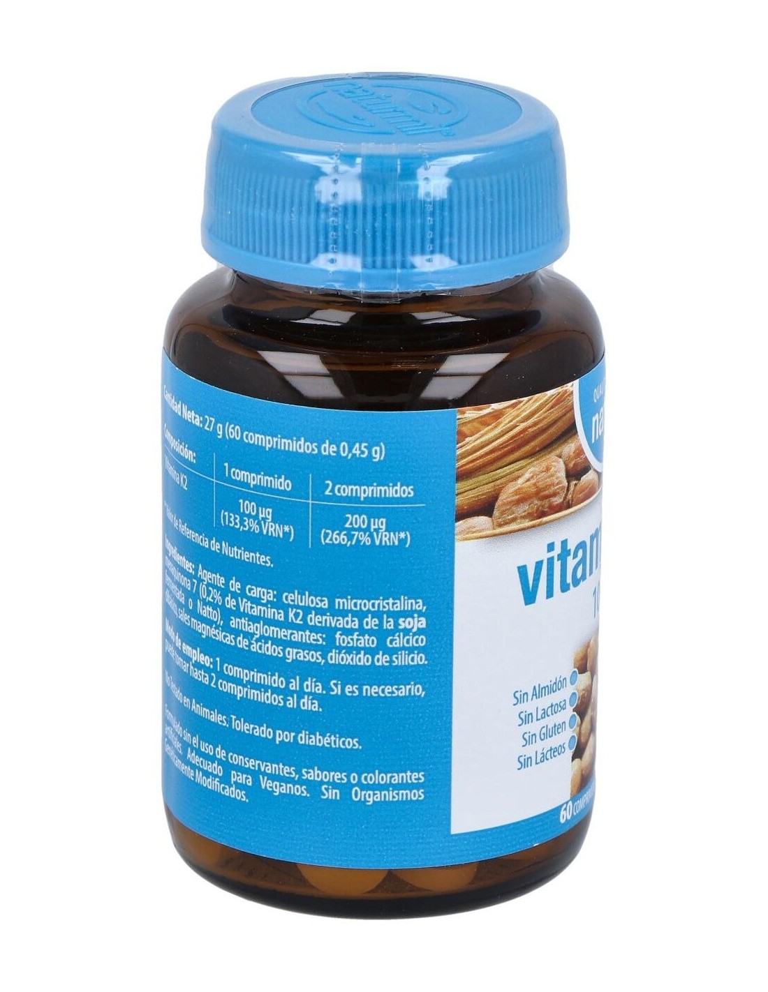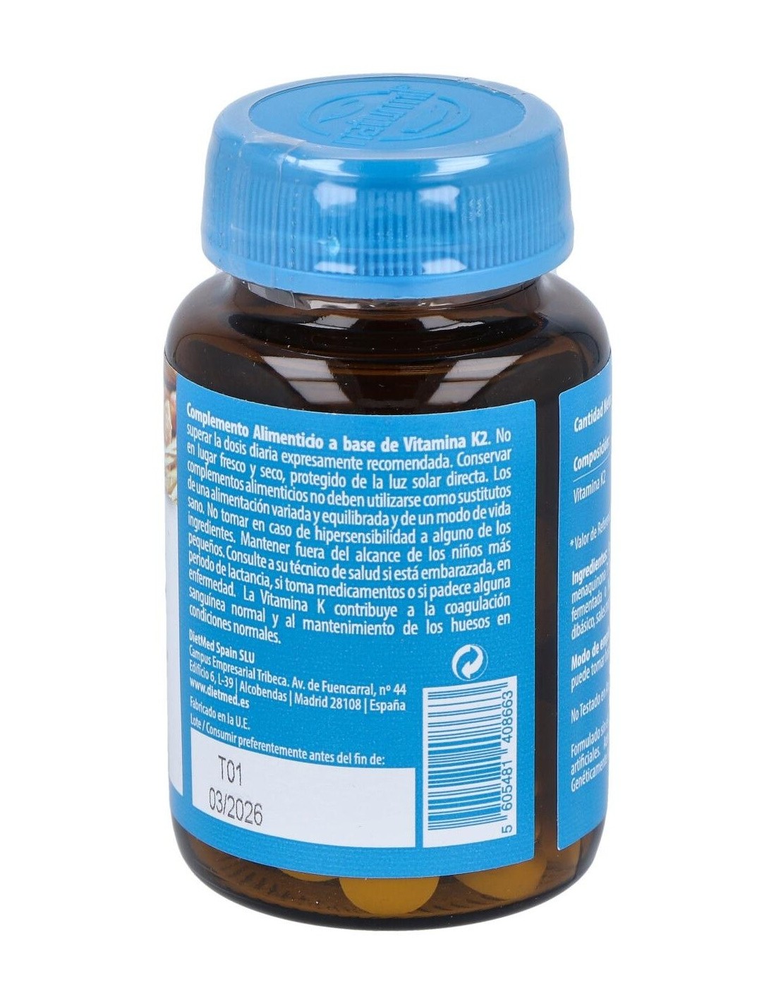 Agente de carga: celulosa microcristalina, menaquinona 7 (0,2% de Vitamina K2 derivada de la soja fermentada o Natto), antiaglomerantes: fosfato cálcico dibásico, magnesio estearato, dióxido de silicio. Por 1 comprimido: Vitamina K2: 100 mcg.