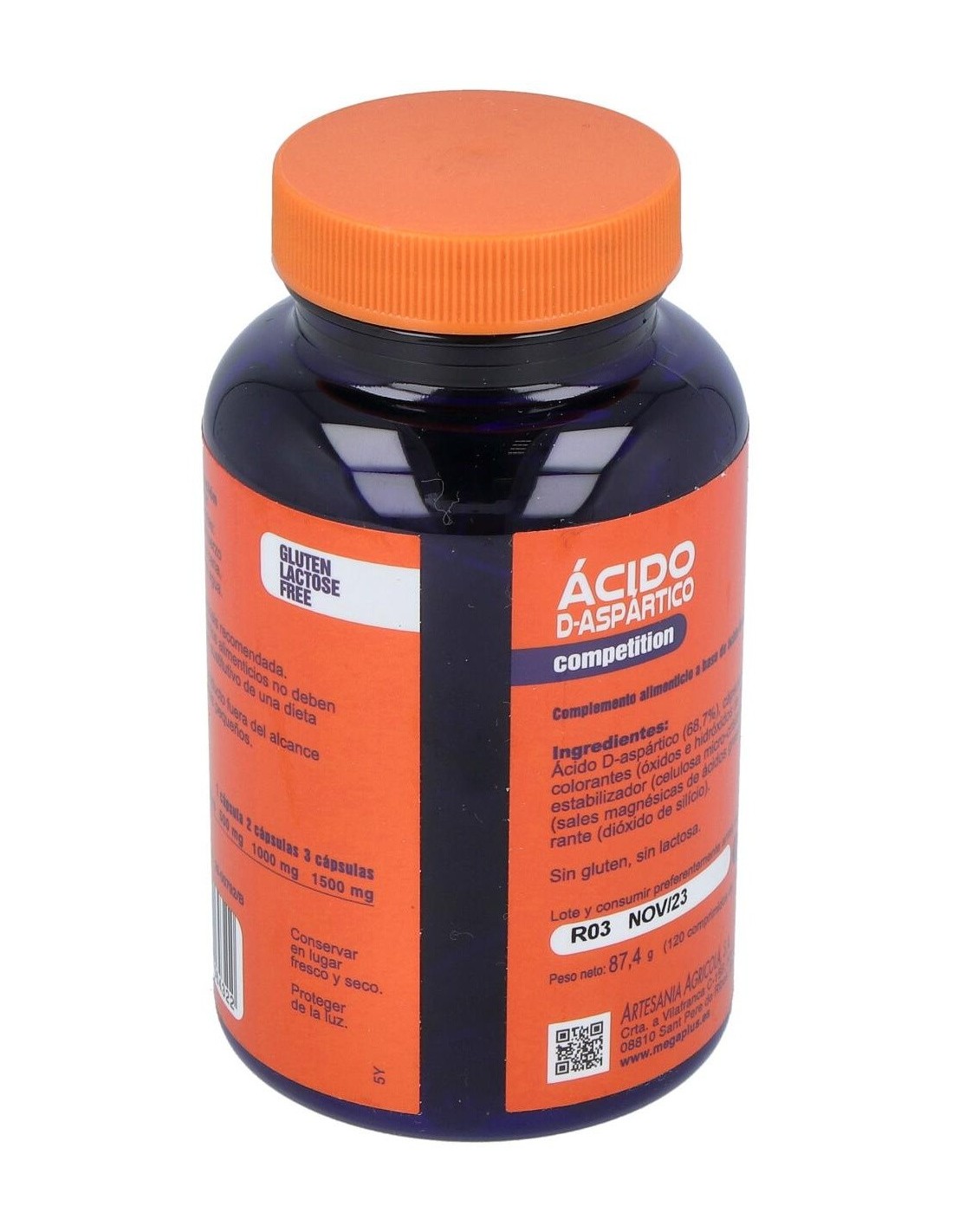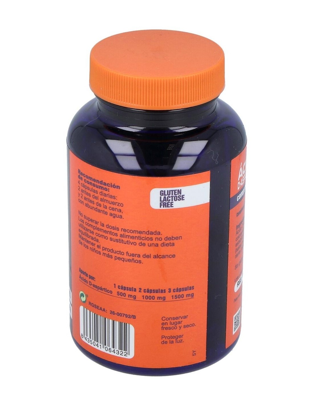 Ácido D- aspártico, Cápsula [Gelatina, Colorantes (Óxidos e Hidróxidos de Hierro)], Estabilizador (Celulosa Microcristalina), Emulgente (sales magnésicas de Ácidos grasos), Antiaglomerante (Dióxido de Silicio).