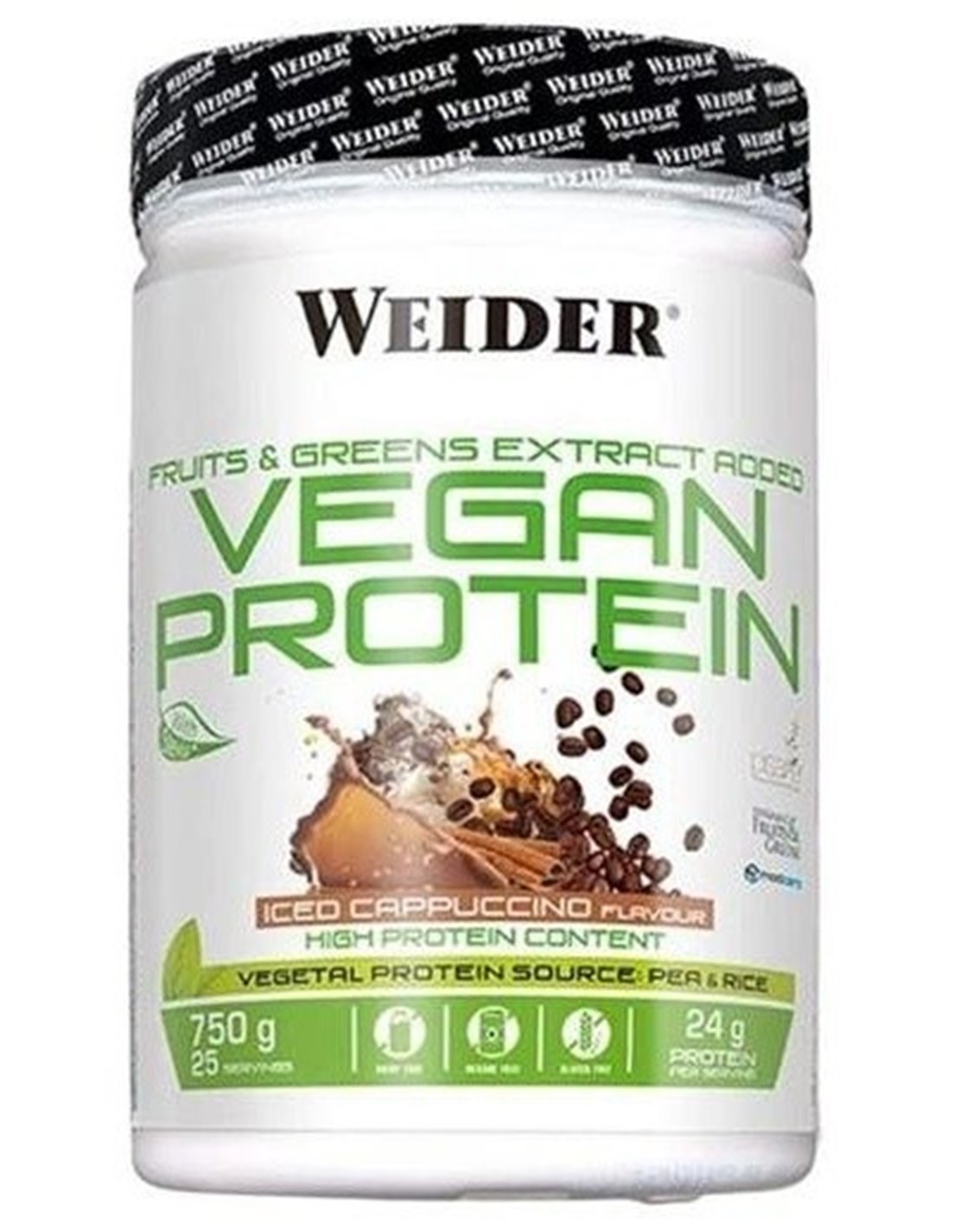 89% aislado de proteína de guisante, 3% concentrado de proteína de arroz, aroma, extracto de café, mezcla de cereales y semillas (salvado de avena (sin gluten), quinoa, amaranto, alforfón (sin gluten), mijo), 1% fibra de acacia, maltodextrina, edulcorante: glucósidos de esteviol producidos enzimáticamente; vitamina B12 (metilcobalamina). Pisane® C9, ModCarb. \ \ *Fabricado en unas instalaciones donde también se procesan sulfitos, crustáceos, huevos, pescado, soja, leche, mostaza y derivados de los mismos.