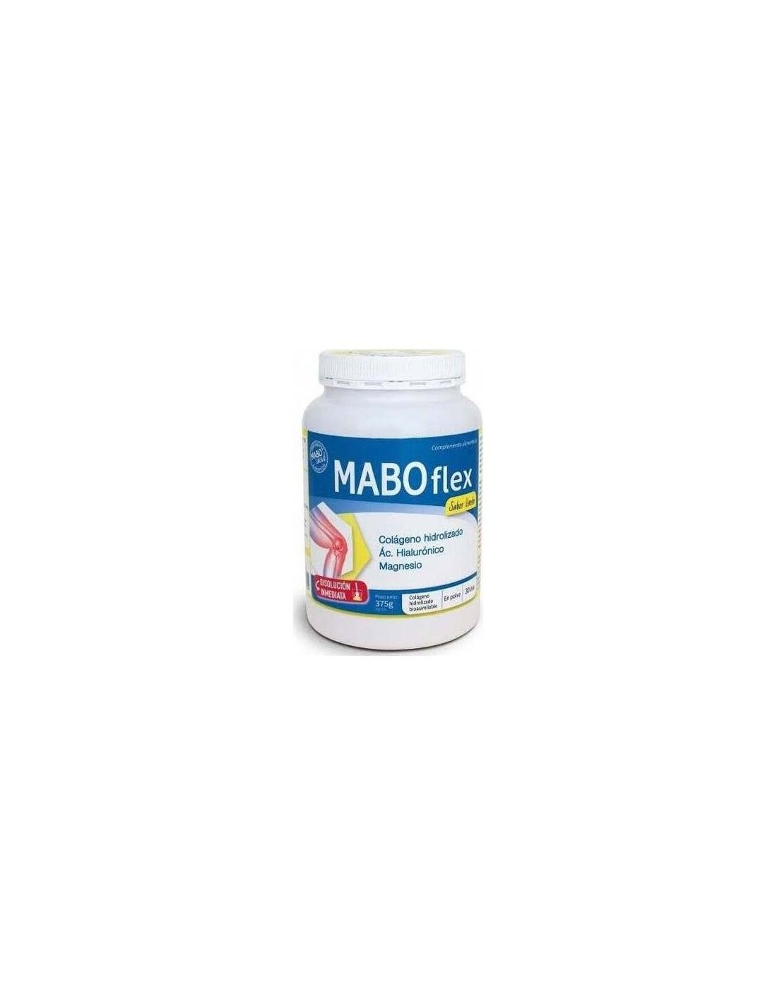MABOflex Colágeno es un complemento alimenticio con colágeno hidrolizado bioasimilable, ácido hialurónico, magnesio y vitaminas B1, B2, B6 y C, nutrientes que contribuyen al normal funcionamiento de músculos y huesos (magnesio), a la formación de colágeno ( vitamina C), y a la reducción de la fatiga y el cansancio (magnesio, vitamina C, vitaminas del grupo B).