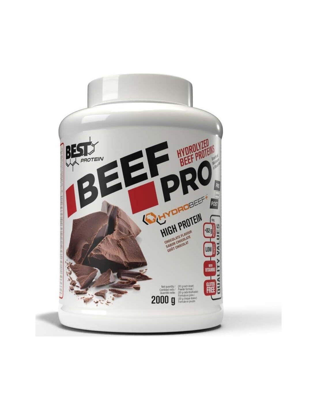 Complemento alimenticio de sabor chocolate, a base de proteínas y vitaminas. BEEF PRO aporta hasta un 87% de proteína de origen vacuno de alta cantidad con un perfil óptimo de aminoácidos siendo una proteína de alto valor biológico, alta digestibilidad y rápida absorción. Aporta a los músculos lo necesario para ayudar a mantenerlos y desarrollarlos.