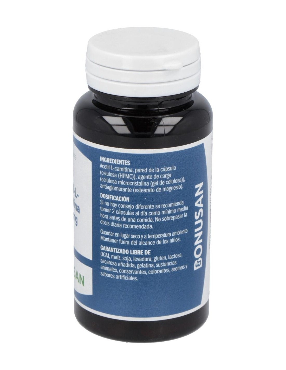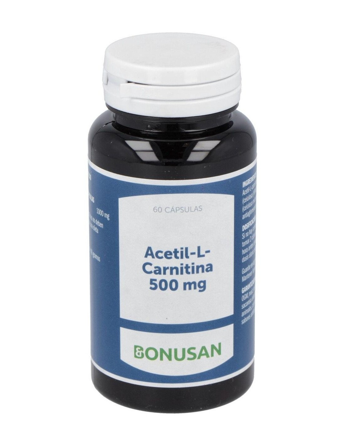 Acetil-L-Carnitina 1.000mg, Agente de carga (Celulosa Microcristalina), Pared de la cápsula (Celulosa (HPMC)), Antiaglomerante (Estearato de Magnesio).