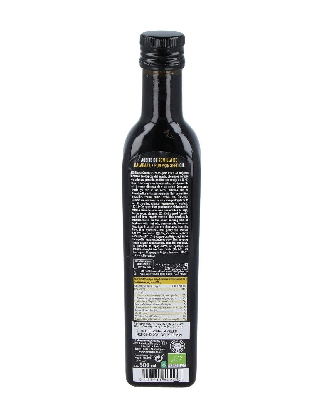 Aceite De Calabaza 1ª Pression Frio 500Ml Bio de Naturgreen