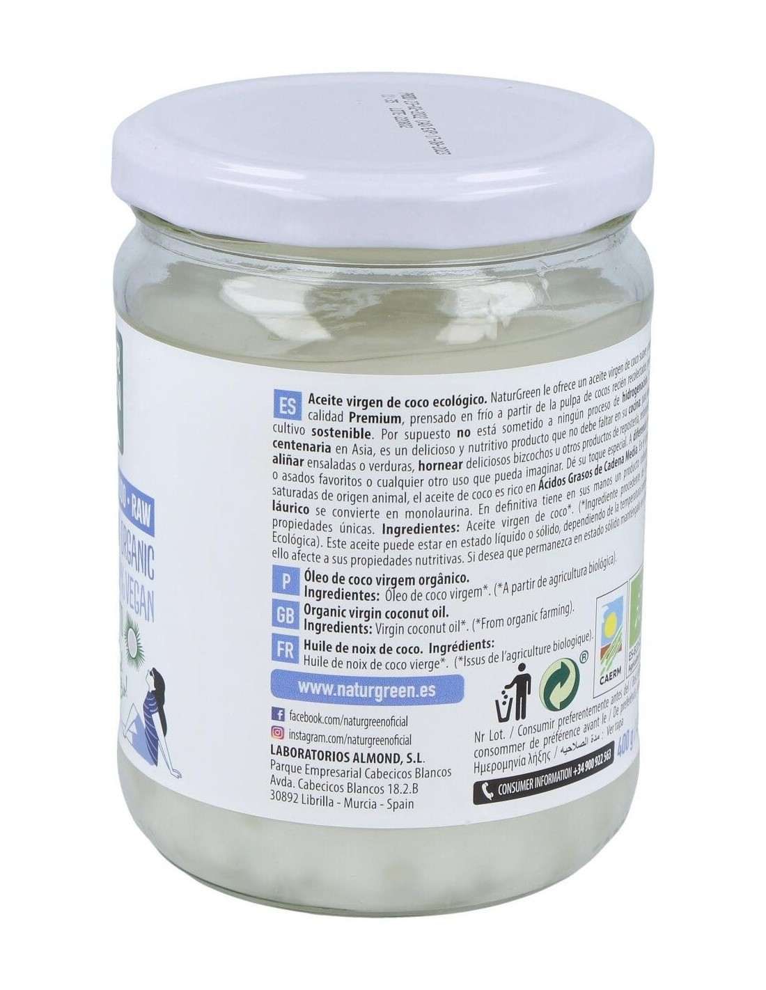 Aceite Virgen De Coco 1ª Presion Frio 400Gr. Bio de Naturgreen