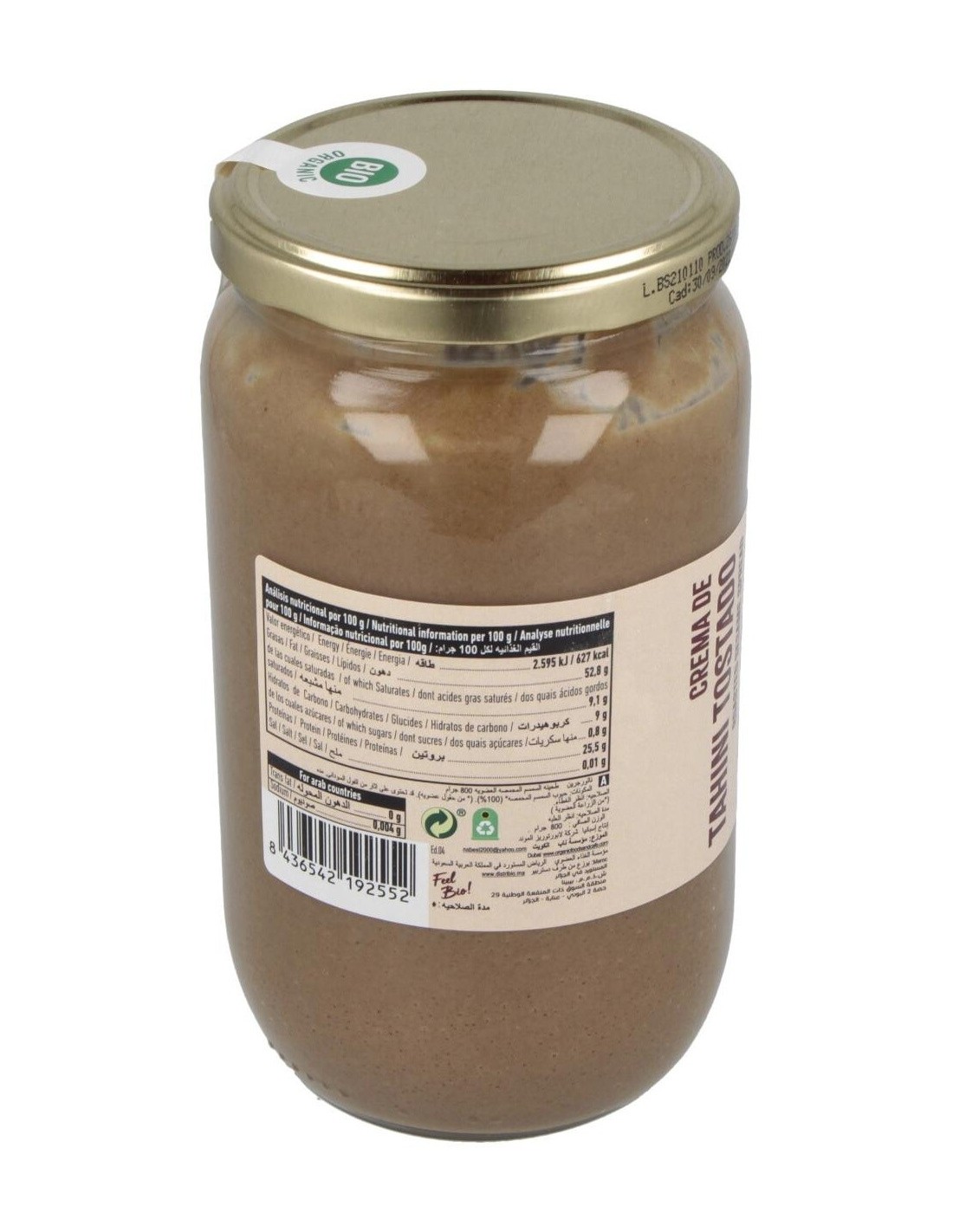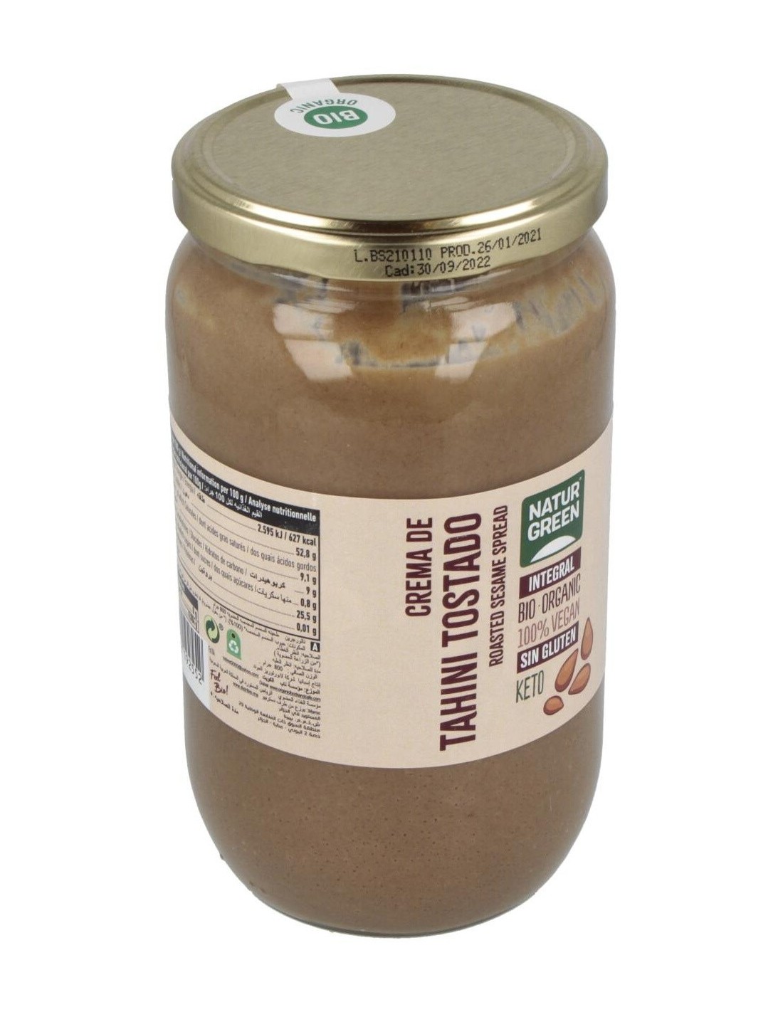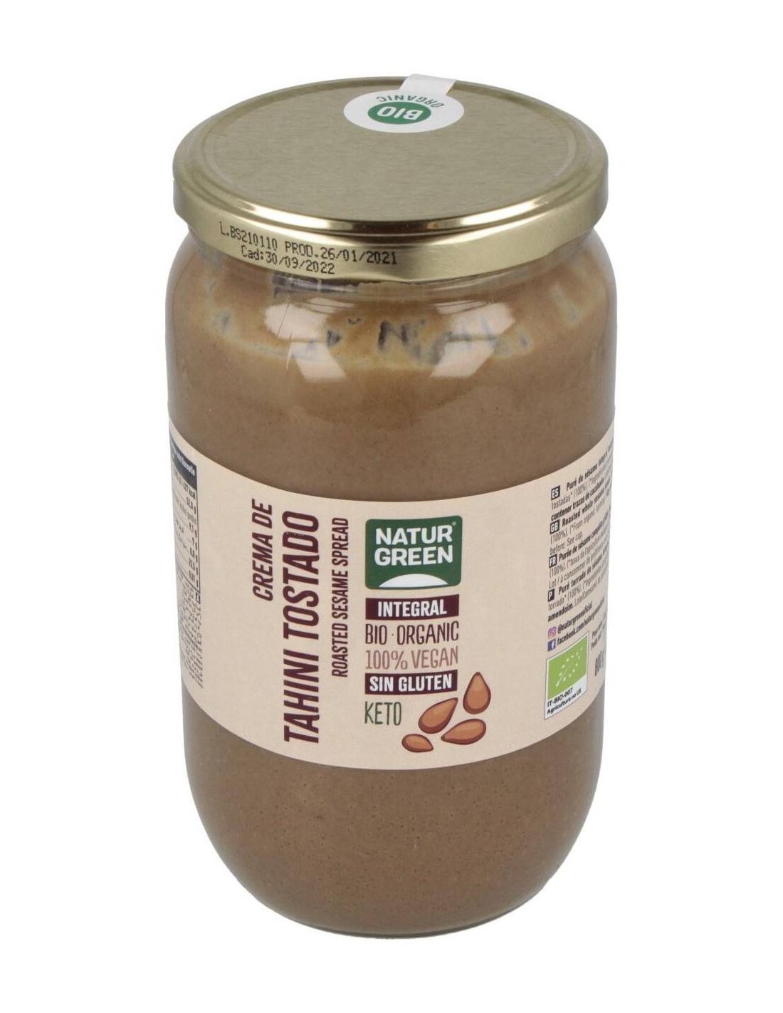 ¡Benefíciate de todas las propiedades del sésamo con Naturgreen Tahín Ecológico De Sésamo Tostado 800 G!