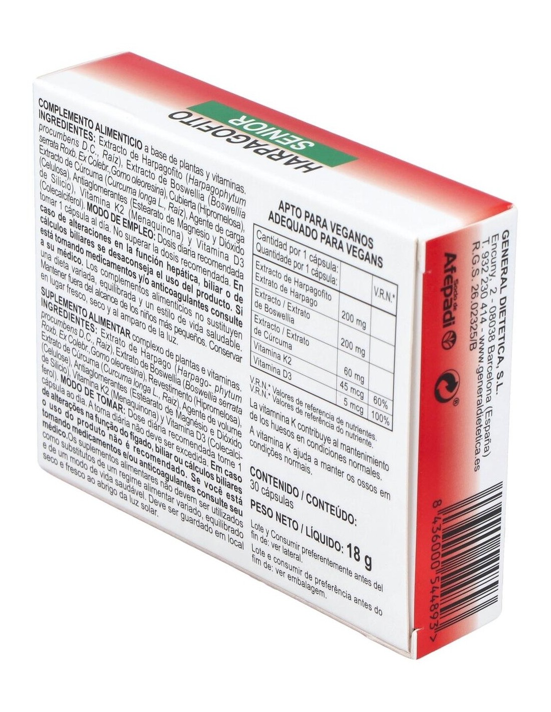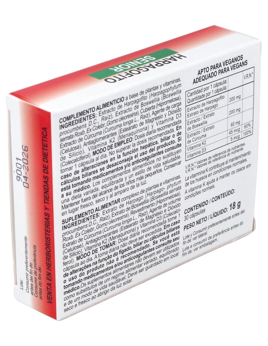Extracto de Harpagofito, Extracto de Boswelia, Extracto de Cúrcuma, Extracto de Vitamina K2 (Menaquinona) y Vitamina D (Colecalciferol).