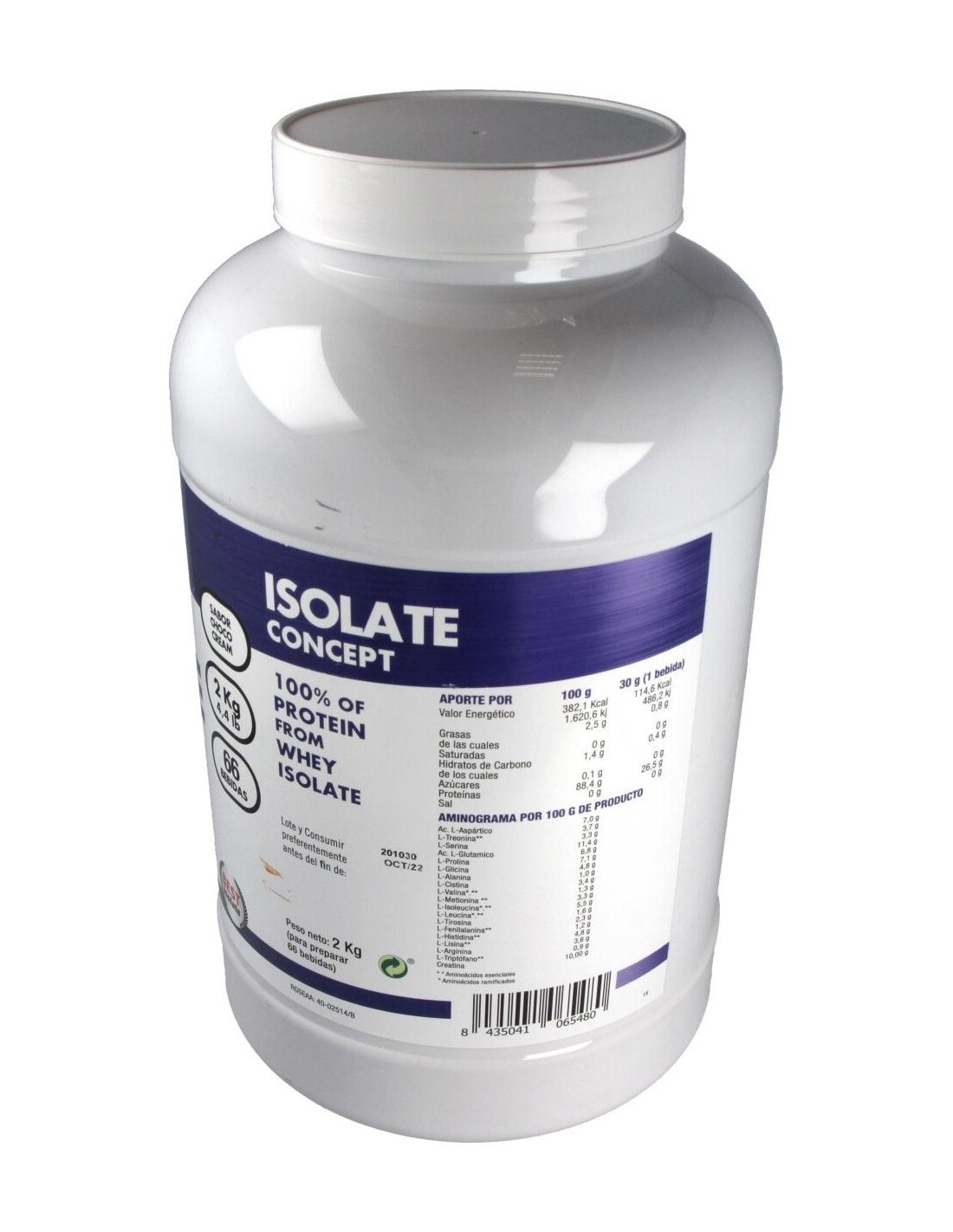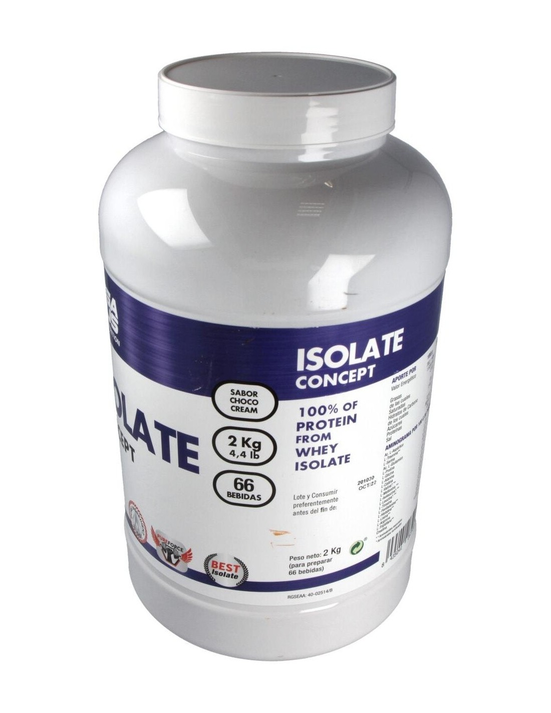 Producto con un elevado contenido proteico (88.4%) que combina aislado de proteínas con un complejo equilibrado de aminoácidos, ayuda a construir el músculo.