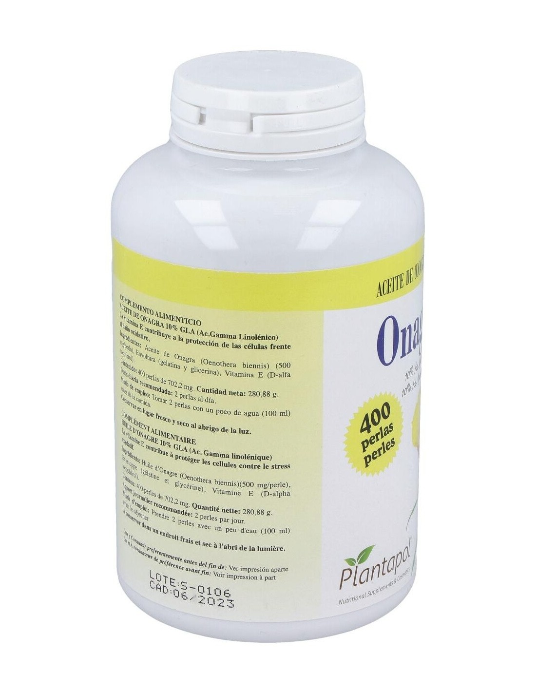 Onagrapol (Aceite De Onagra) 500Mg. 400Perlas de Plantapol