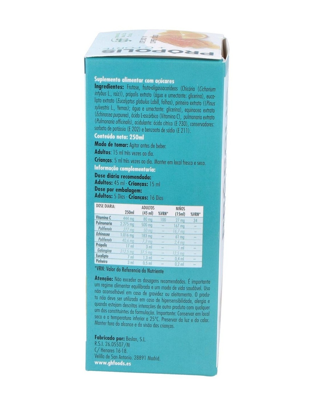 GHF Jarabe Bronquiton 250ml jarabe de Propóleo, Vitamina C, Eucalipto, Pino y Equinácea que gracias a sus ingredientes ayuda a estimular el sistema inmunológico. Este jarabe está recomendado para afectaciones en la garganta, oído, boca y estómago. Además, también activa las defensas del organismo, para la protección de posibles infecciones.