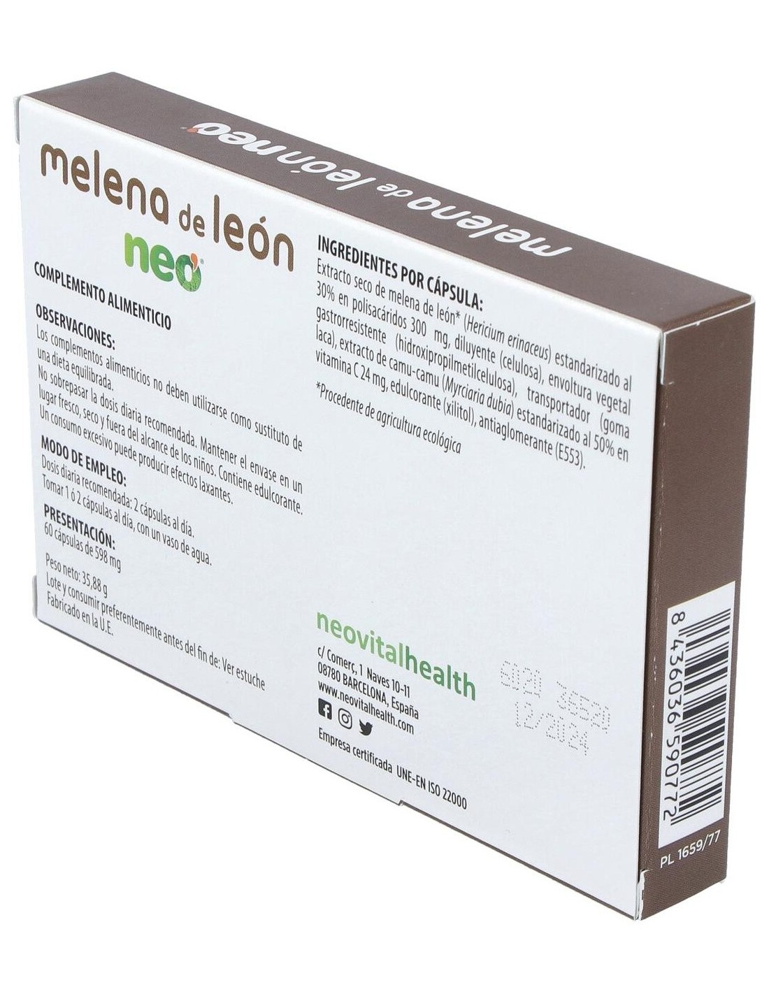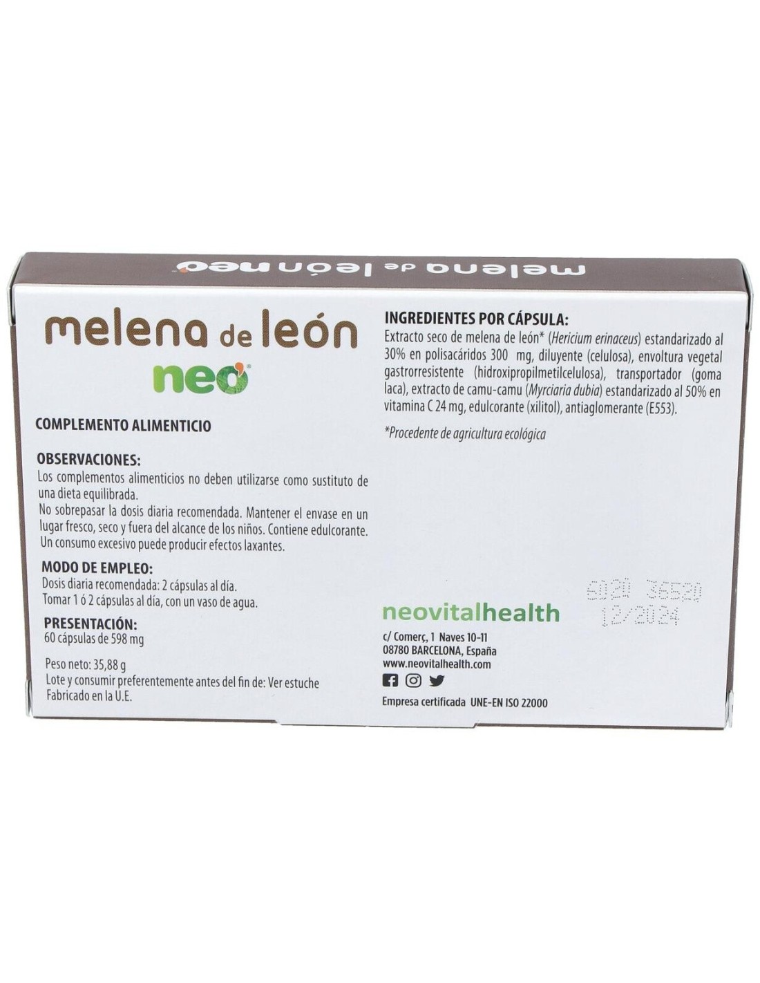 EXTRACT SECO DE MELENA DE LEÓN BIO (20% POLISACÁRIDOS). 24mg DE EXTRACTO DE CAMU CAMU (50% VITAMINA C).