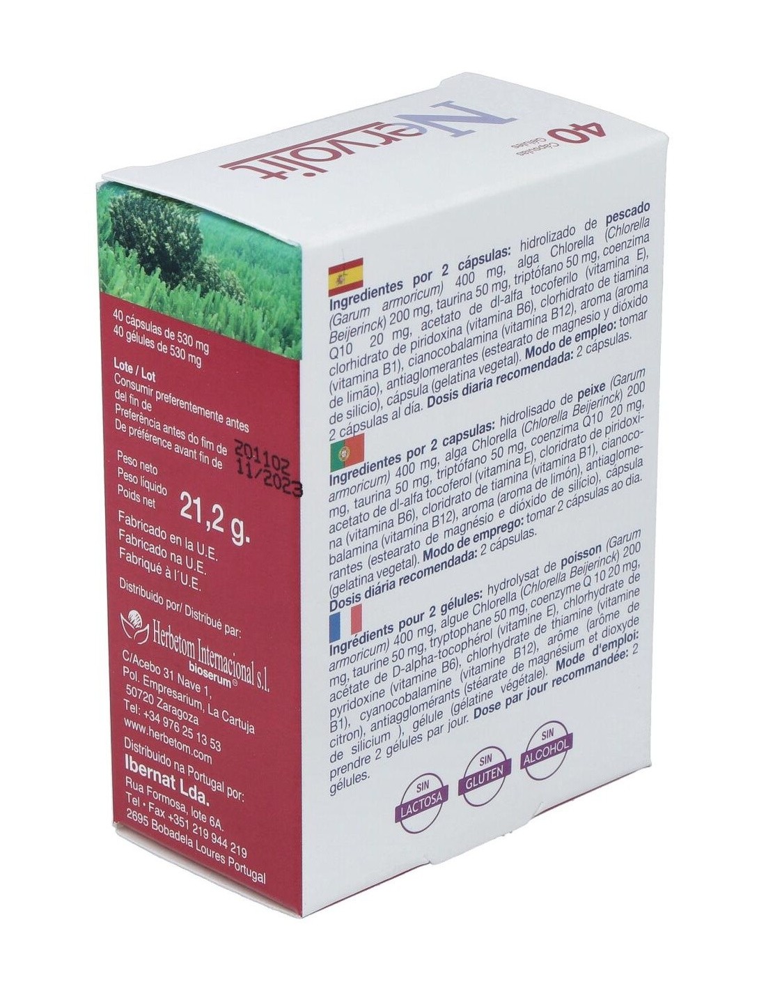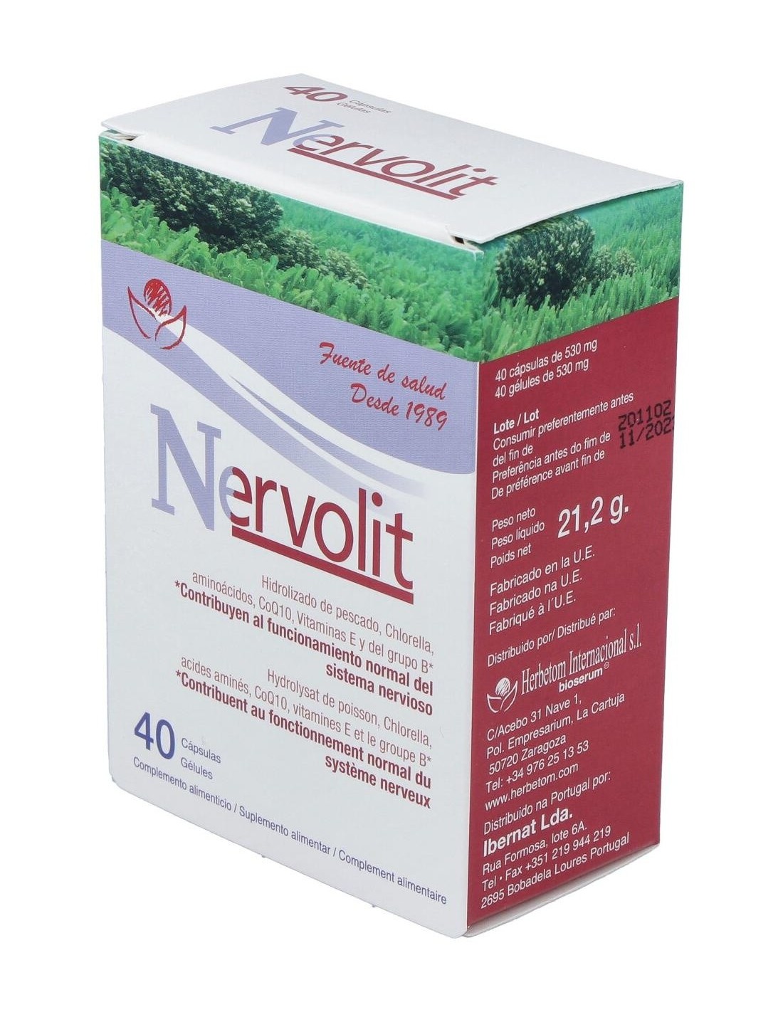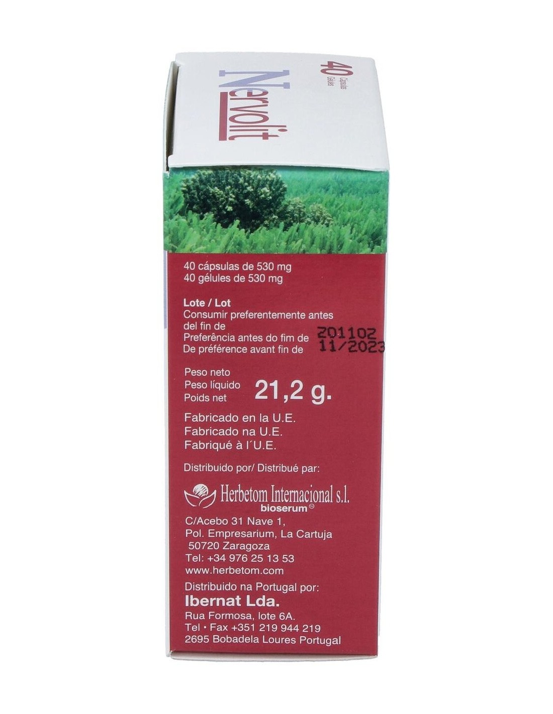 Herbetom Nervolit 40 cápsulas está indicado para el estrés, ansiedad, regulación del estado de ánimo, síndrome premenstrual, regulación del sueño, migrañas de tipo nervioso, y mantener óptimos los niveles de endorfinas y encefalinas.