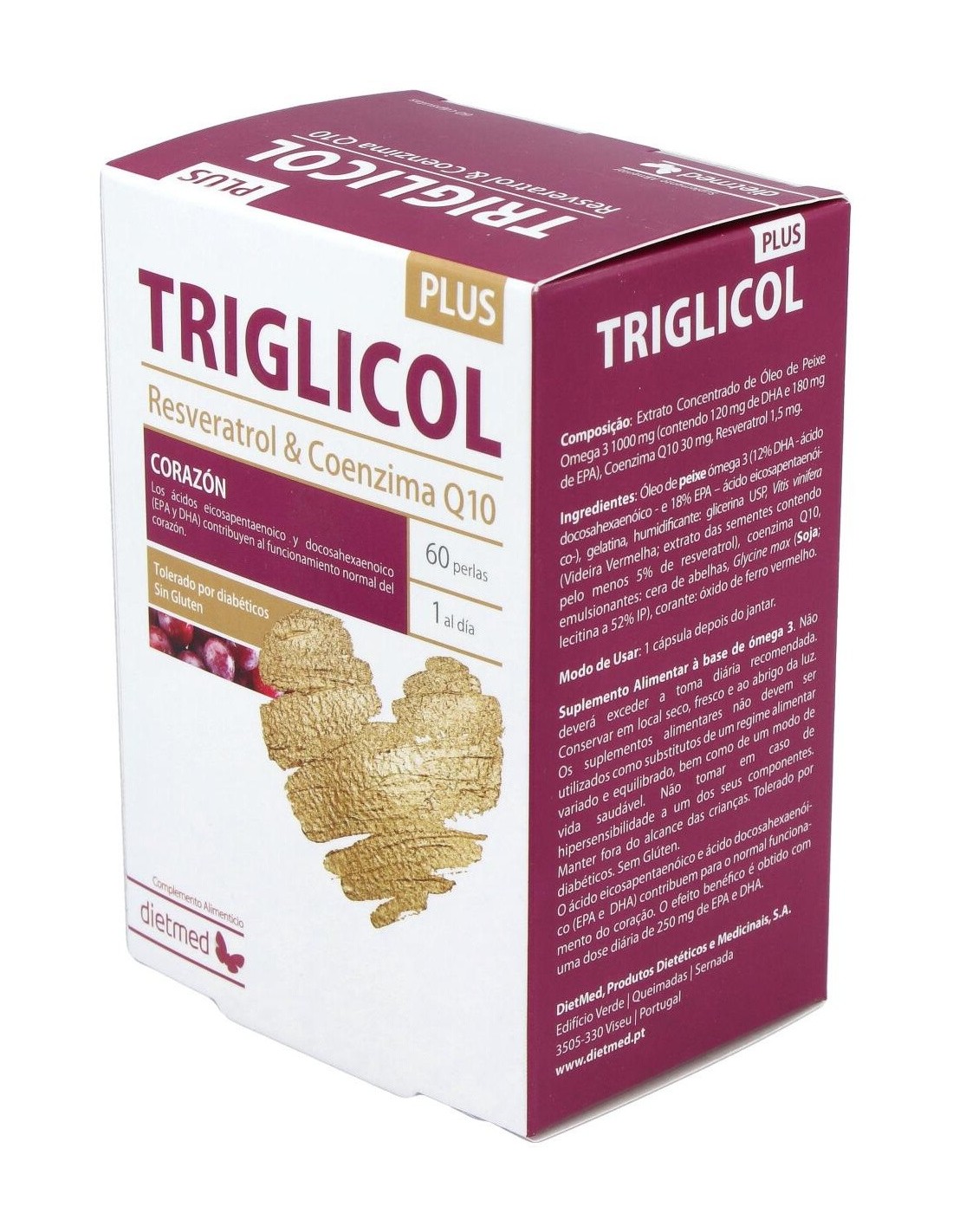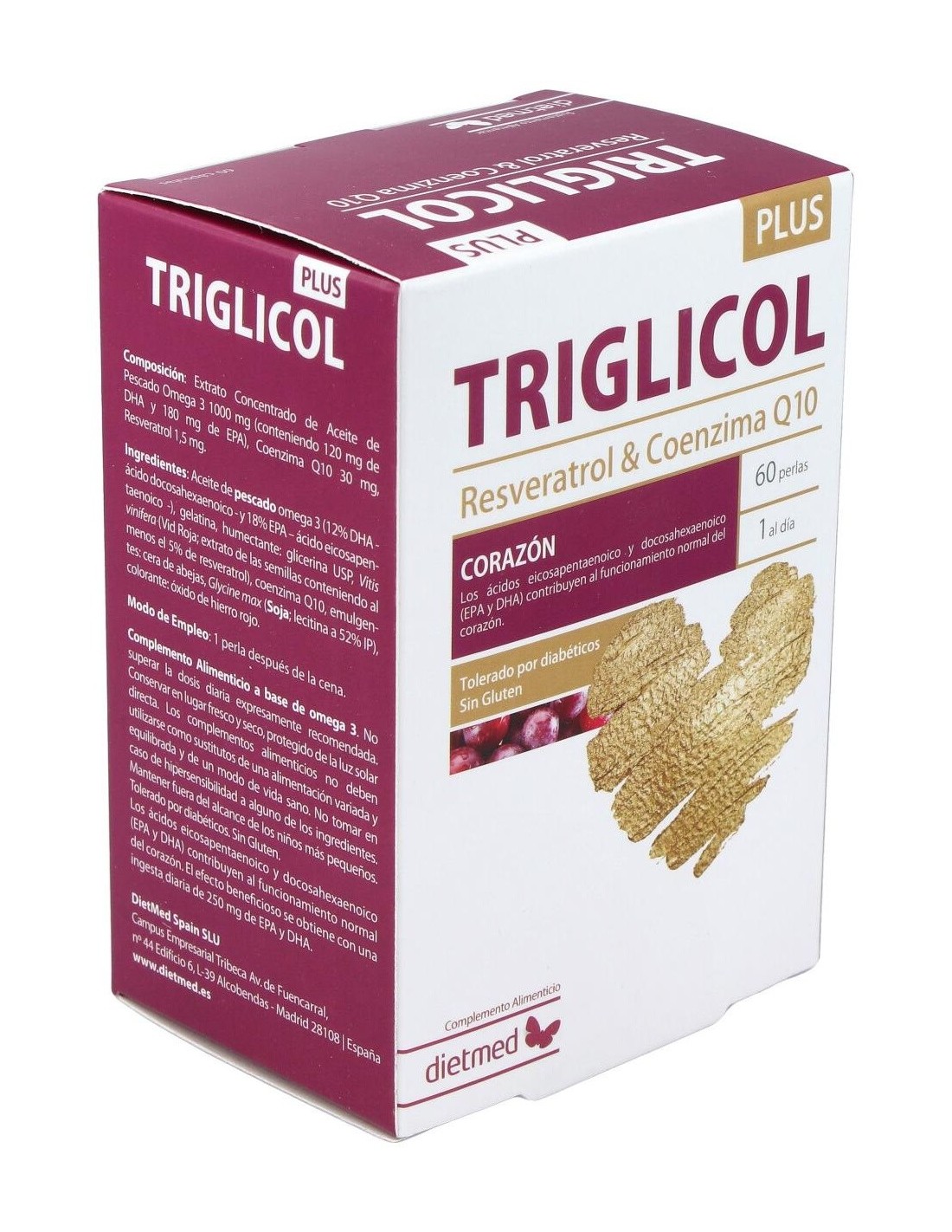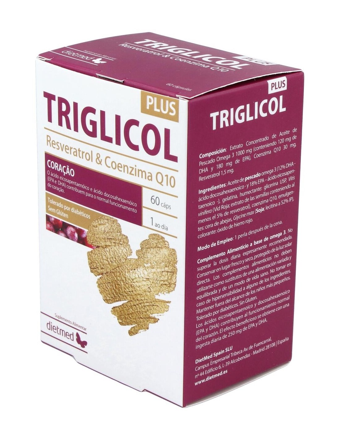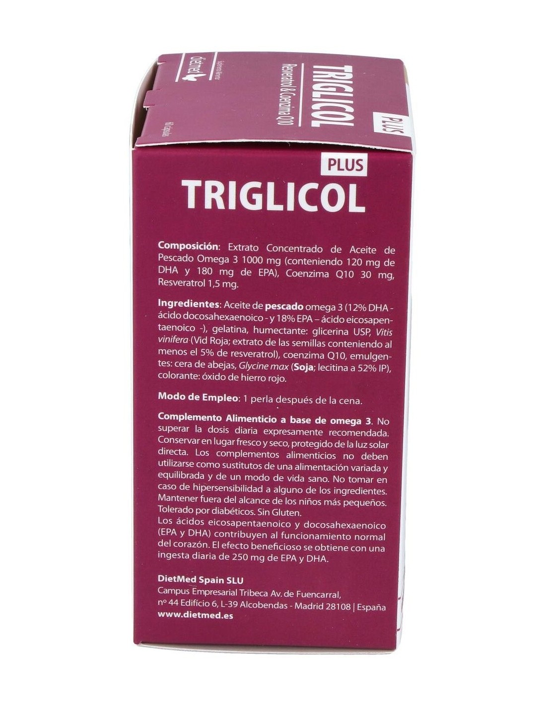 Omega 3 (1000 mg), EPA (180 mg), DHA (120 mg), Coenzima Q10 (30 mg), Resveratrol (1.5 mg), Extracto de Vid roja, Aceite de Pescado, Coenzima Q-10.