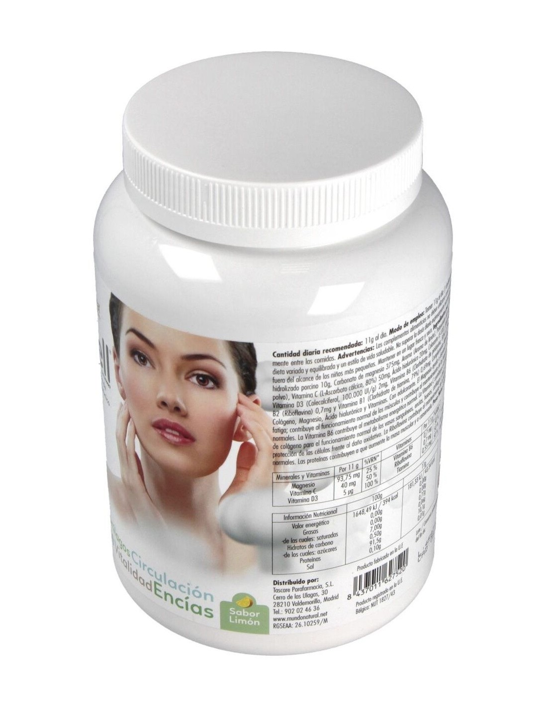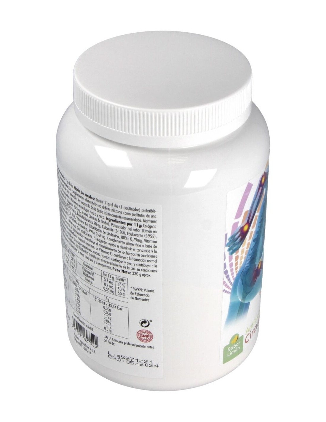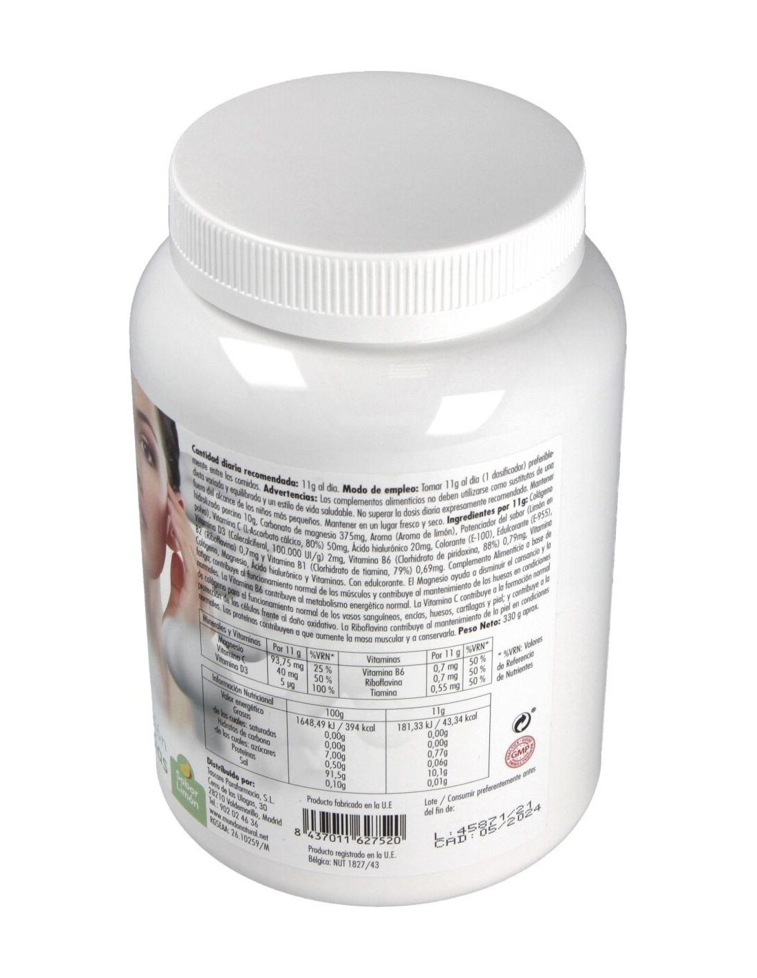 Complemento alimenticio a base de Colágeno hidrolizado (péptidos bioactivos), Magnesio, Ácido hialurónico y Vitaminas B1, B2, B6, C y D3 (Colecalciferol). Aumenta la resistencia y la fuerza de tendones, músculos, huesos y cartílagos. Contribuye a la formación normal del colágeno para el funcionamiento normal de vasos sanguíneos, huesos, cartílagos, encías y piel: ayuda a disminuir el cansancio y la fatiga: ayuda al metabolismo energético normal y contribuye al funcionamiento normal del sistema inmunitario.