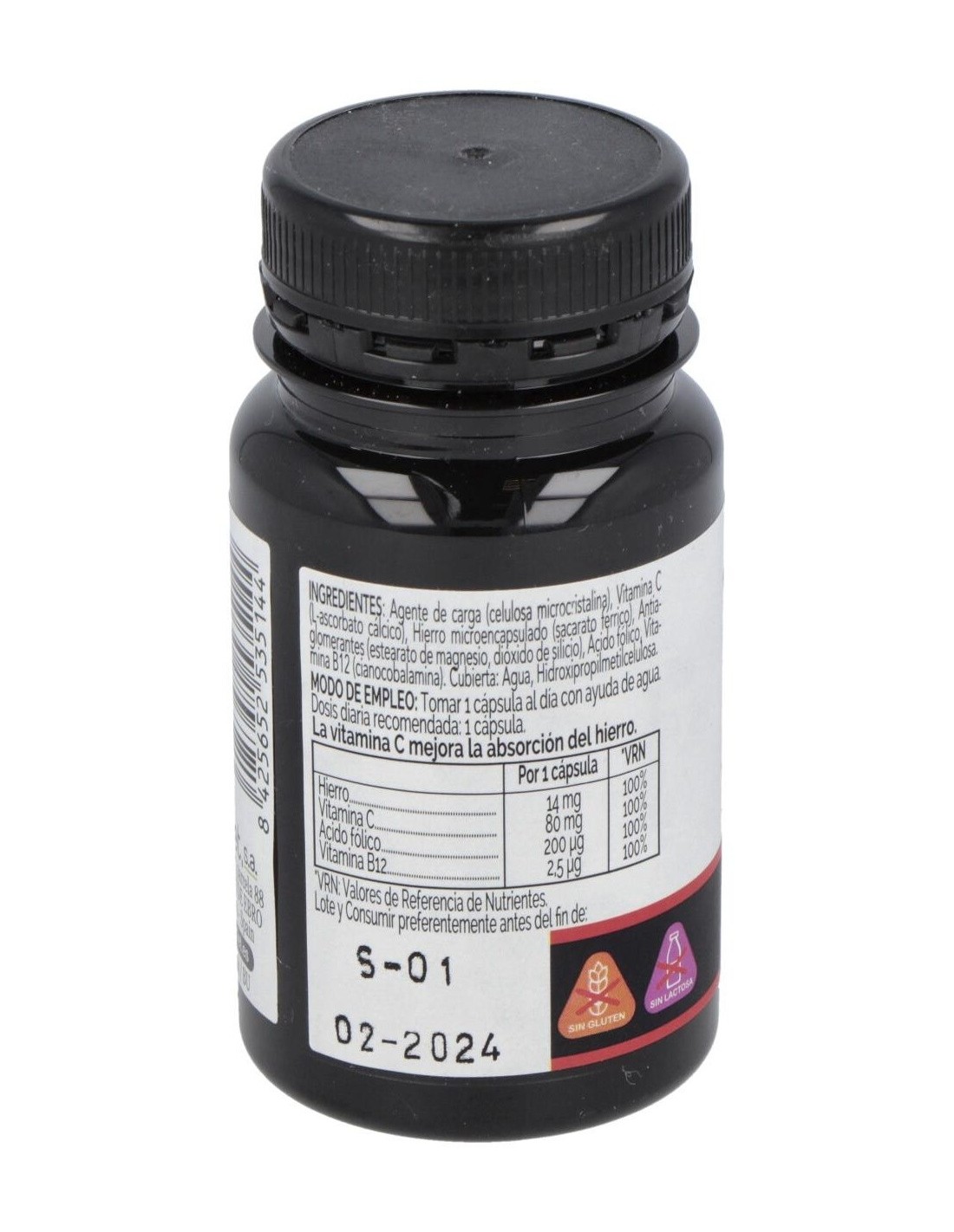 Complemento alimenticio en cápsulas vegetales, elaborado para tratamientos de casos de anemia y debilidad en la sangre. Es un producto con ingredientes naturales que contribuye a mejorar la estructura de los vasos y capilares sanguíneos. Contiene levadura de cerveza, lecitina de soja, vitamina C, vitamina B12, ácido fólico, fumarato de hierro y fibra dietética. Contribuye a mejorar estados de cansancio, agotamiento, pérdida abundante de sangre como períodos, úlceras, sangrado gingival, heridas y estados postoperatorios. Es apto en embarazo y lactancia. Favorece la oxigenación celular y la cicatrización de la piel.
