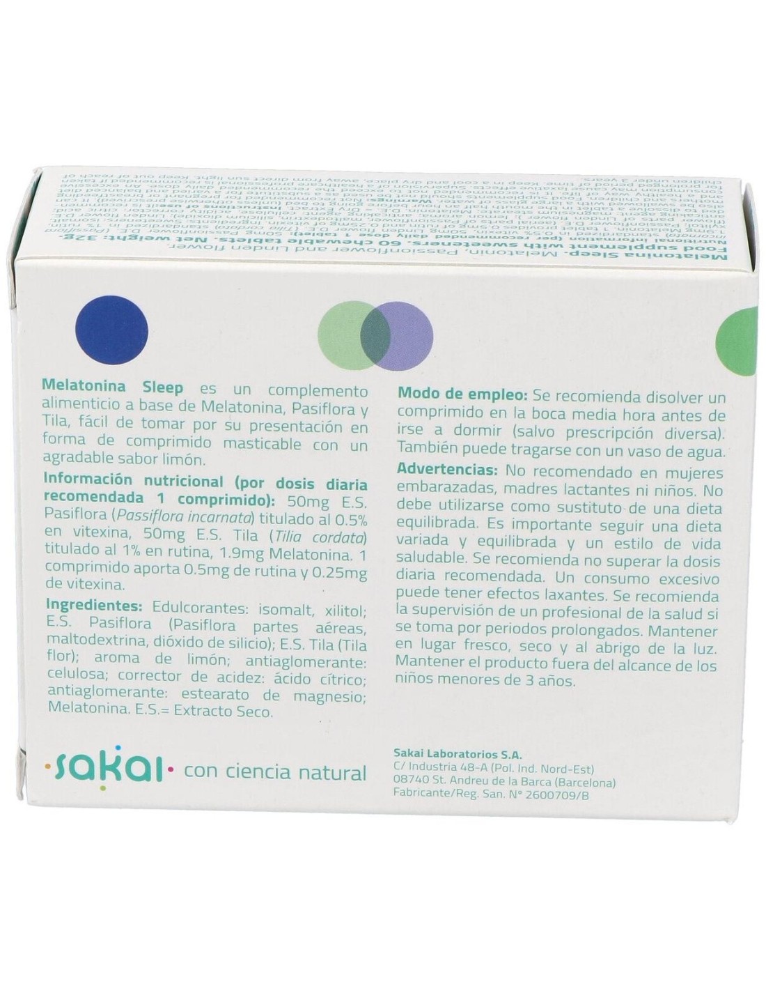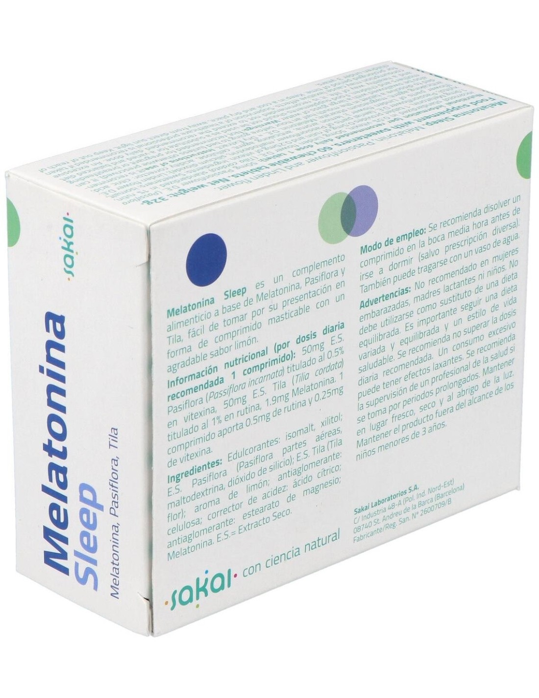 Sakai Melatonina Sleep 60comp es un complemento a base de melatonina, pasiflora y tila diseñado para las personas con trastornos del sueño.