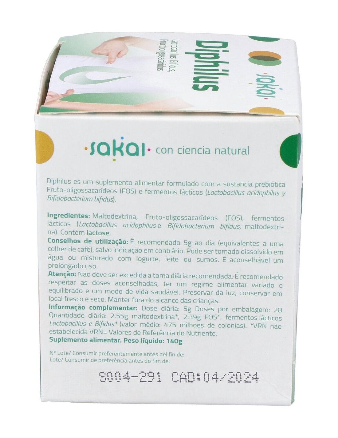 Maltodextrina, fructoligosacáridos (Achicoria raíz), fermentos lácticos probióticos (Lactobacillus acidophilus, Bifidobacterium bifidus: maltodextrina).