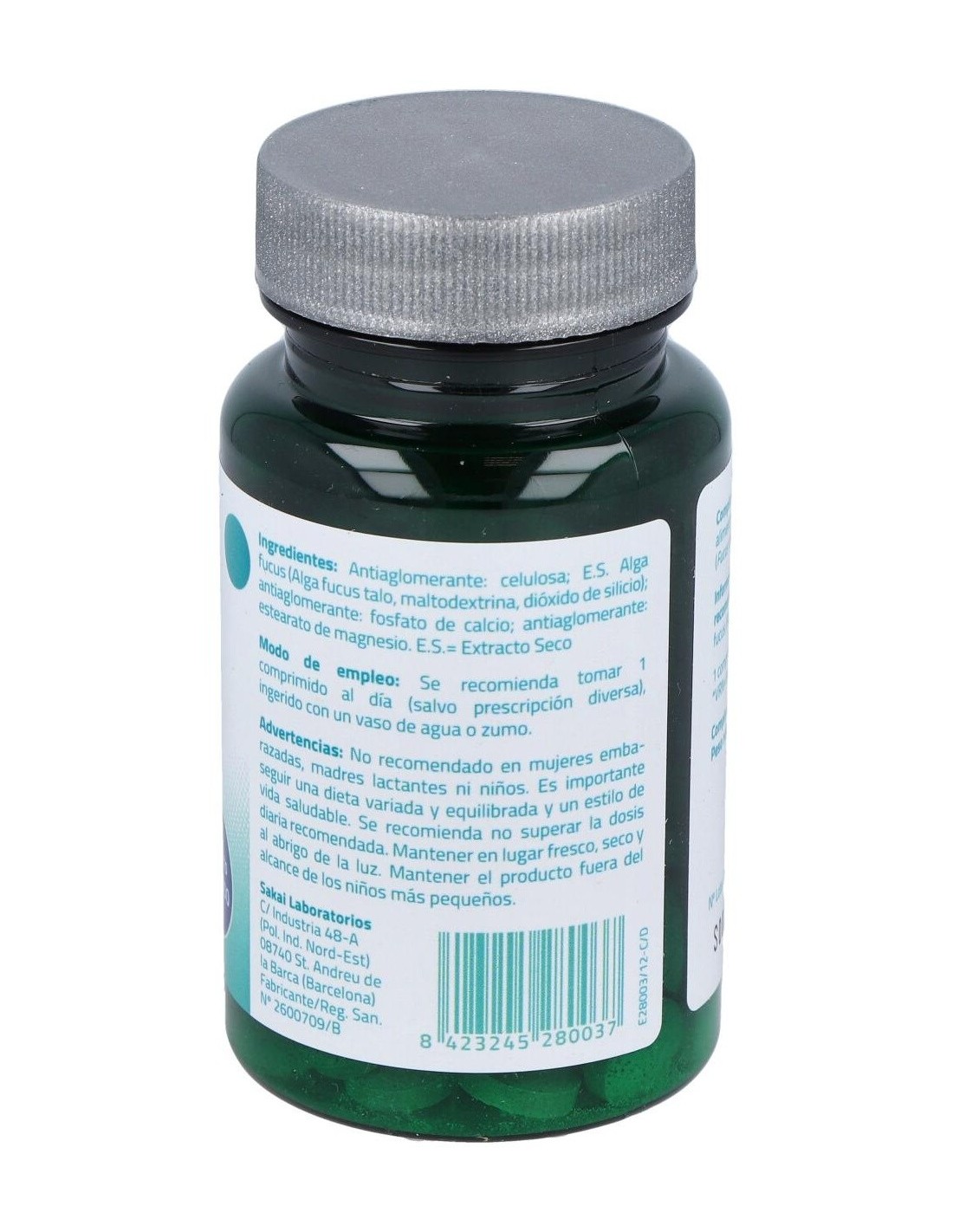 Antiaglomerante: celulosa: E.S. Alga fucus (Alga Fucus planta, maltodextrina): antiaglomerante: calcio fosfato: polvo Alga fucus: antiaglomerante: estearato de magnesio.