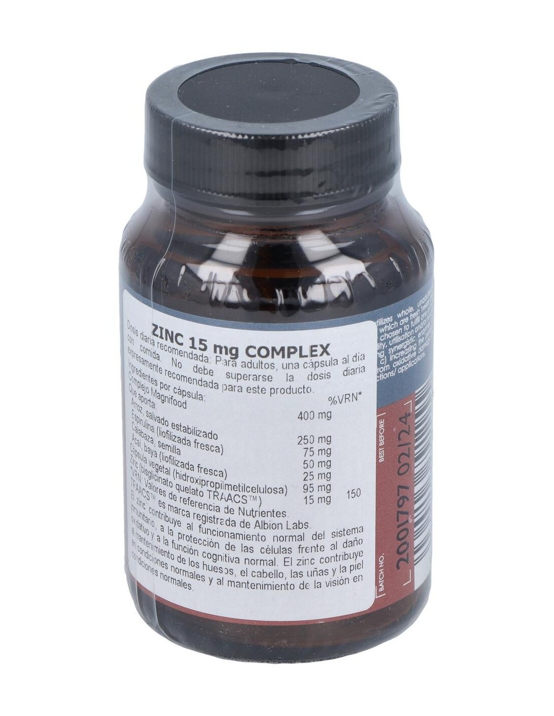 Complemento alimenticio a base de zinc y plantas del Complejo Magnifood. El zinc contribuye al funcionamiento normal del sistema inmunitario, a la protección de las células frente al daño oxidativo y a la función cognitiva normal. Apto para vegetarianos y veganos.