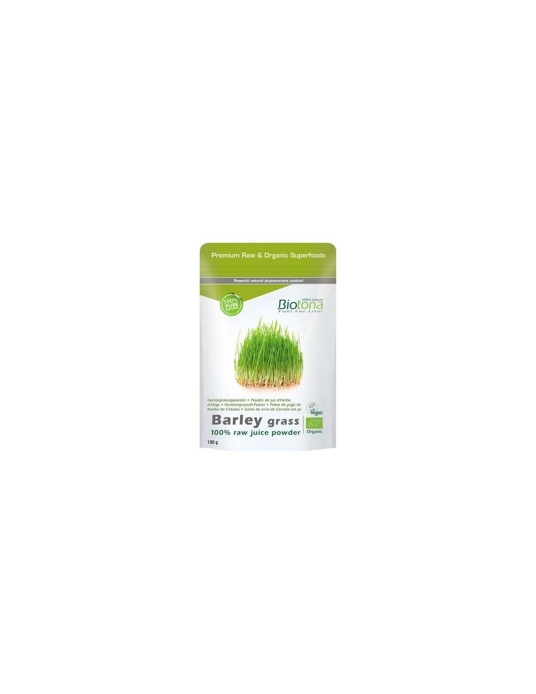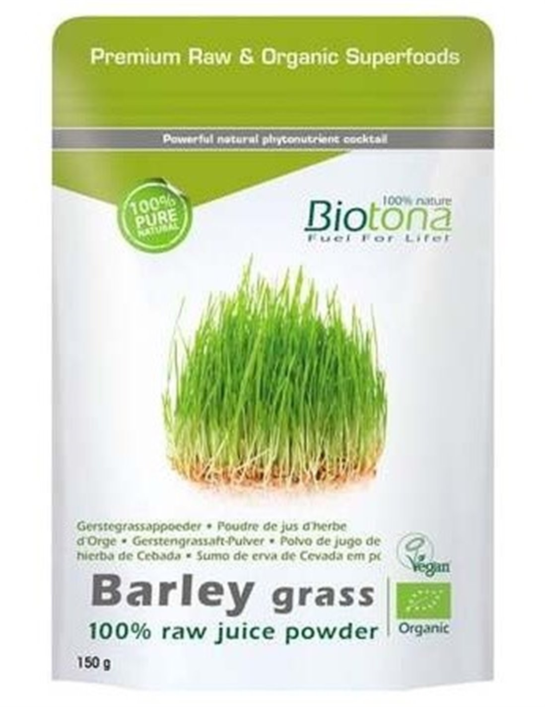 Biotona bio polvo de jugo de hierba de Cebada Raw se elabora a base de brotes tiernos de cebada recolectados inmediatamente antes de la formación de los granos, el momento en el que el contenido de fitonutrientes es mas elevado. El polvo se obtiene gracias al procedimiento EverRAW (siempre fresco), un proceso de vanguardia, único en su género que permite garantizar el frescor y la calidad. El jugo es prensado y secado en 2 minutos mientras que la temperatura no supera la del organismo. El proceso desde la recolección a la obtención del polvo no lleva mas de dos horas en total y conserva todas las vitaminas, minerales y enzimas de la hierba de trigo. Producto vegano.