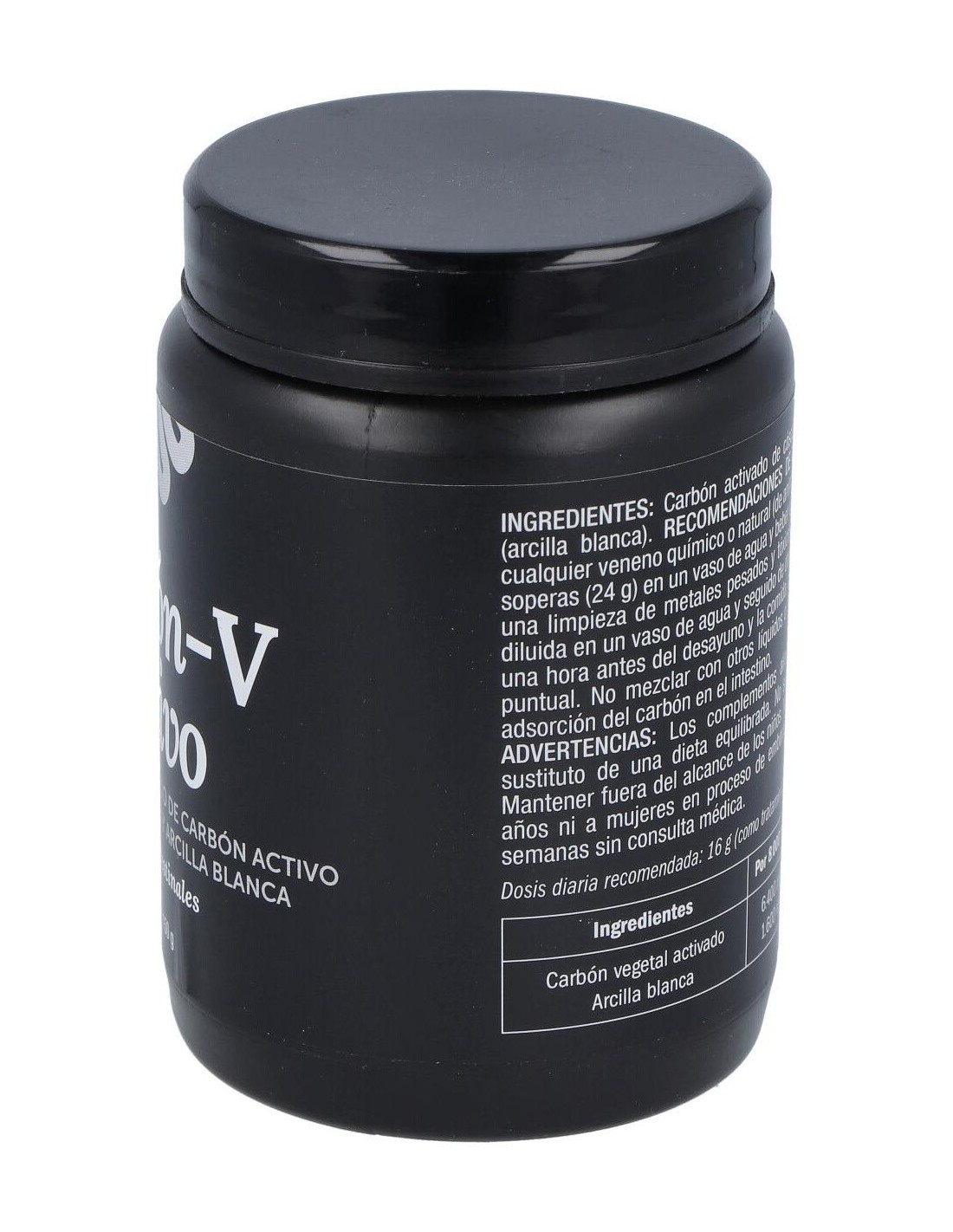 Se recomienda tomar el Carbón-V 1 hora antes del desayuno y/o la comida durante quince días. Nunca beber el carbón con refrescos, zumos, vino u otros líquidos o sólidos, para no debilitar el poder de adsorción que tendrá una vez ingerido dentro del intestino. El carbón adsorberá cualquier sustancia con la que se asocie, y ello incluye azúcar, jugo de naranja, etc., y entonces ya no podrá absorber en su interior los tóxicos que perjudican. El carbón activado no adsorbe elementos inórgánicos minerales, por eso puede actuar en sinergia con el caolín.