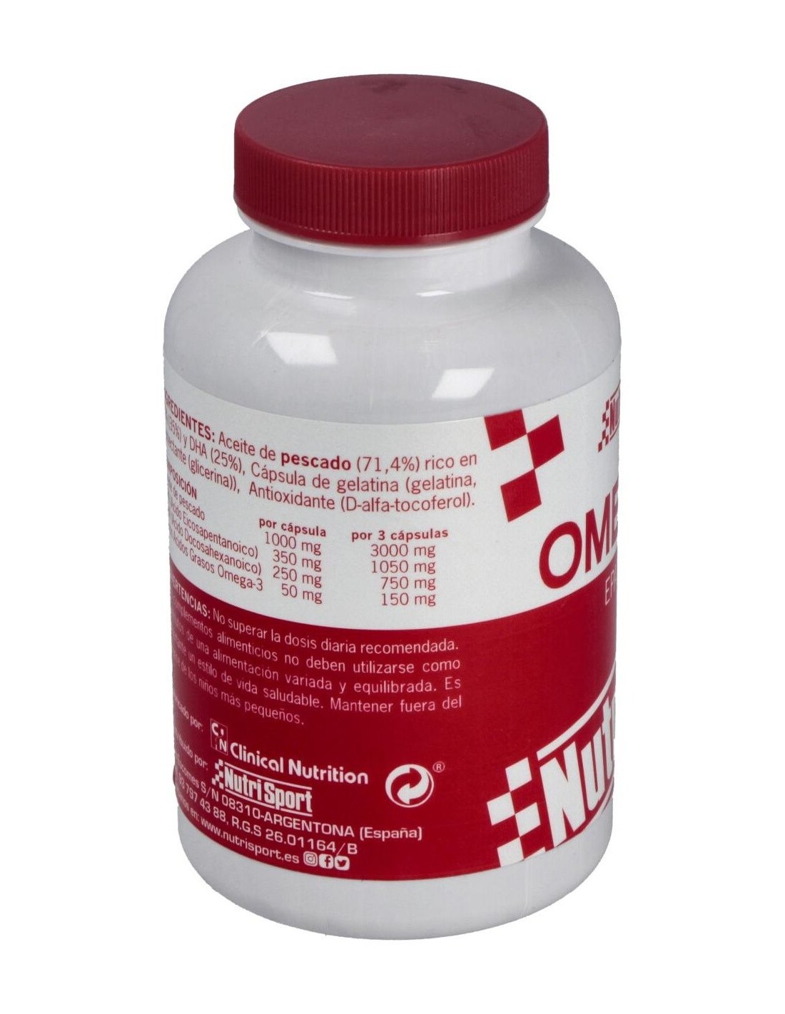 Omega-3 + Nutrisport es un complemento alimenticio que aporta una proporción de 350 mg de EPA y 250 mg de DHA, indicado para aquellas personas que deseen añadir más omega 3 a su pauta alimentaria saludable.