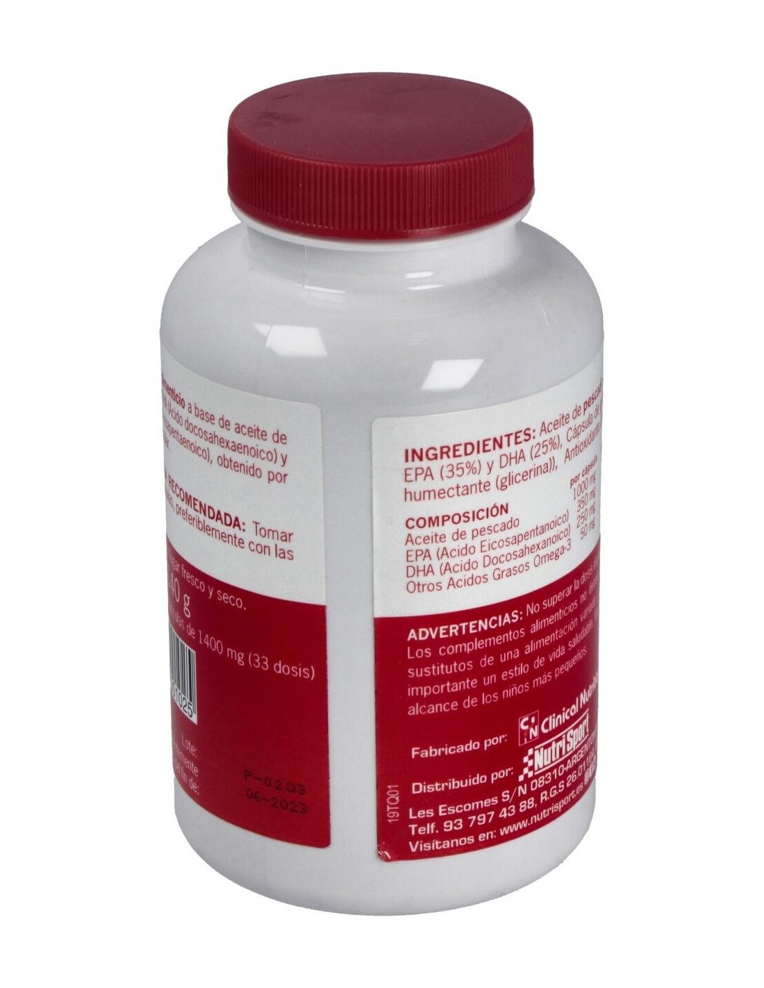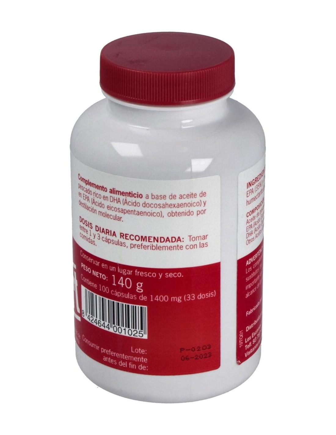 Aceite de Pescado (71,4%), Rico en EPA (35%) y DHA (25%), Cápsula de Gelatina (Gelatina, Humectante (Glicerina)), Antioxidante (D-Alfa-Tocoferol).