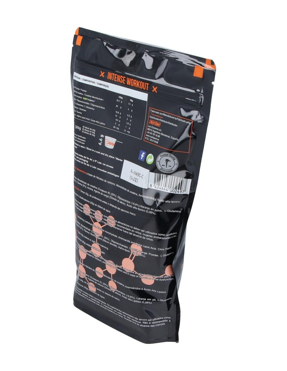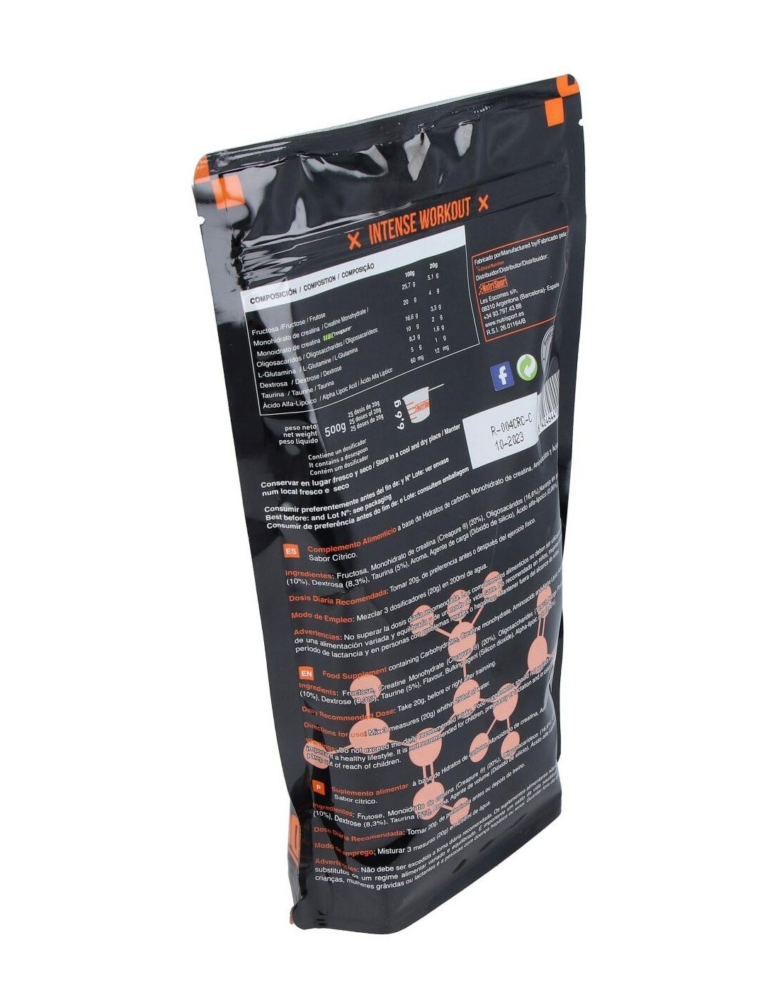 SABOR: Cítrico2. Fructosa, monohidrato de creatina (creapure) (20%), oligosacáridos (16,6%), fresa en polvo1, naranja en polvo2, L-glutamina (10%), dextrosa (8,3%), taurina (5%), aroma, agente de carga (dióxido de silicio), acido alfa-lipoico (0,06%), colorante (E-120)1. No contiene ingredientes alergénicos