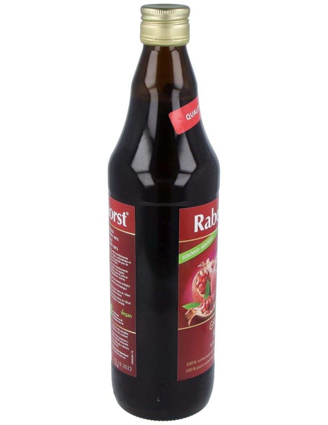 100% puro zumo de granada (Punica granatum) ecológico. Sin azúcar añadido. No procedente de concentrado.