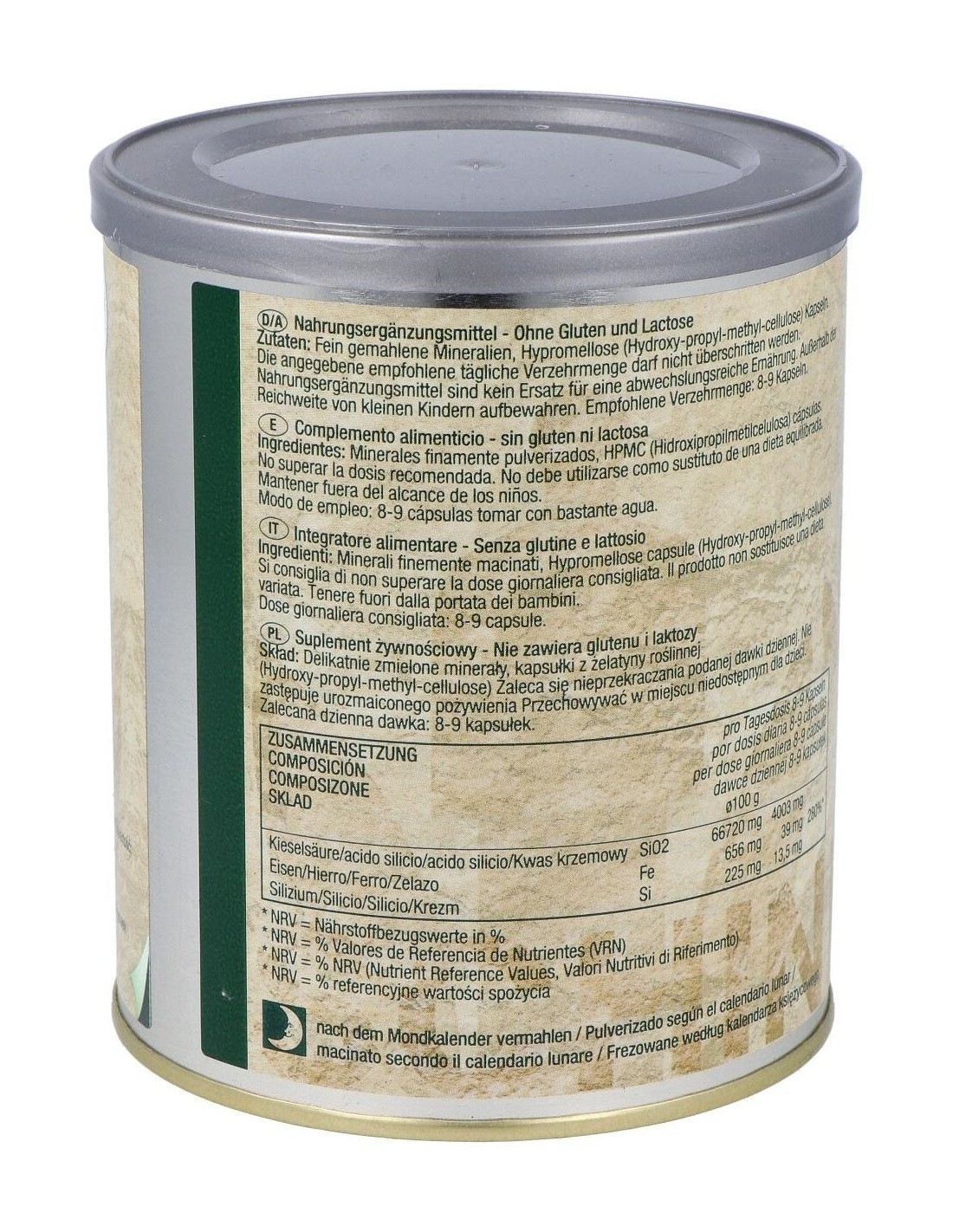 Complemento alimenticio con origen natural en cápsulas con ácido silicio y hierro que ayuda a proporcionar minerales y oligoelementos, que funciona como un complejo vitamínico para contribuye a fortalecer el organismo con la finalidad de mantener la vitalidad y energía del cuerpo para así poder afrontar el día día con fuerza, o para tener un extra de energía al hacer deporte.