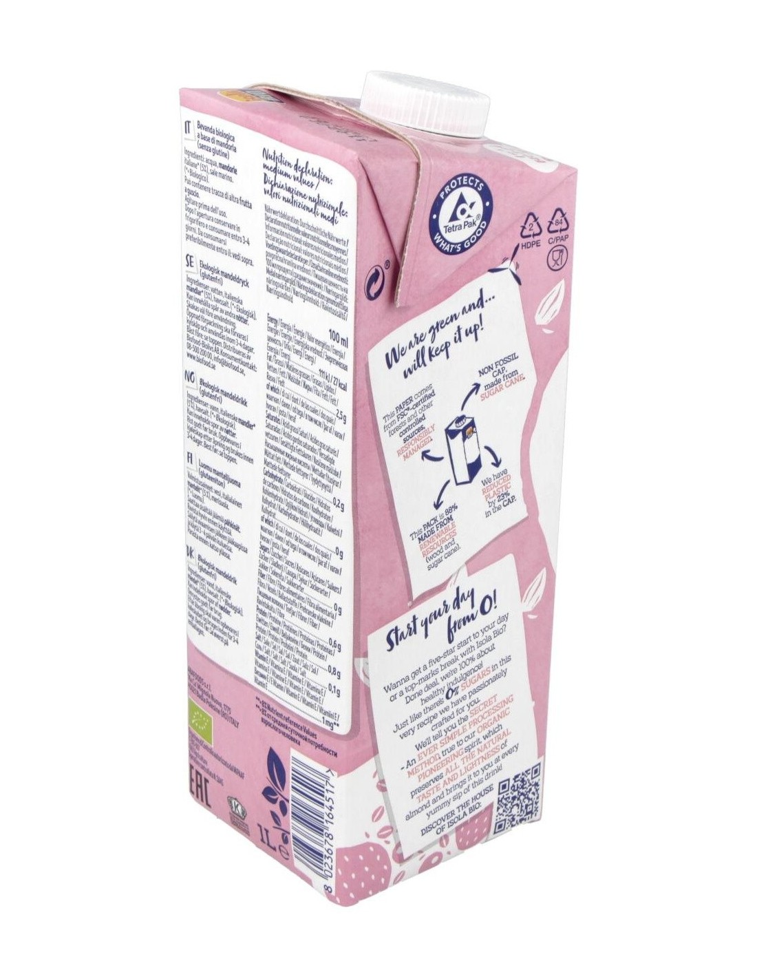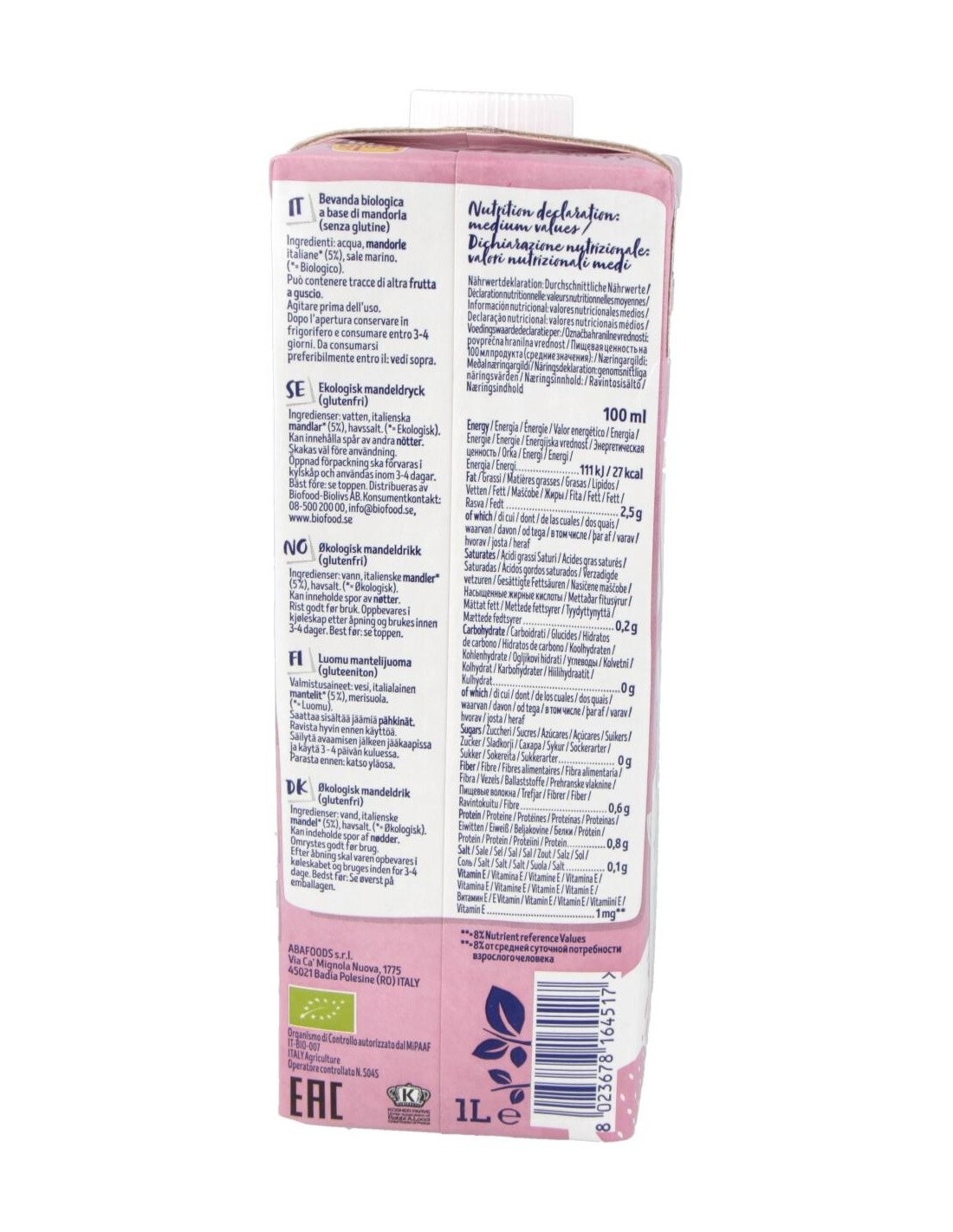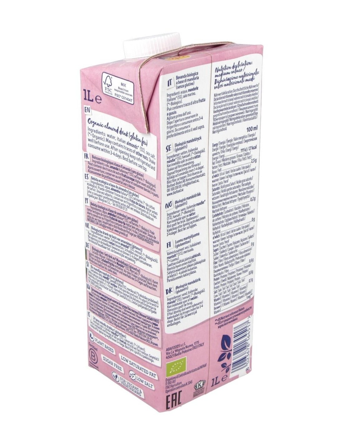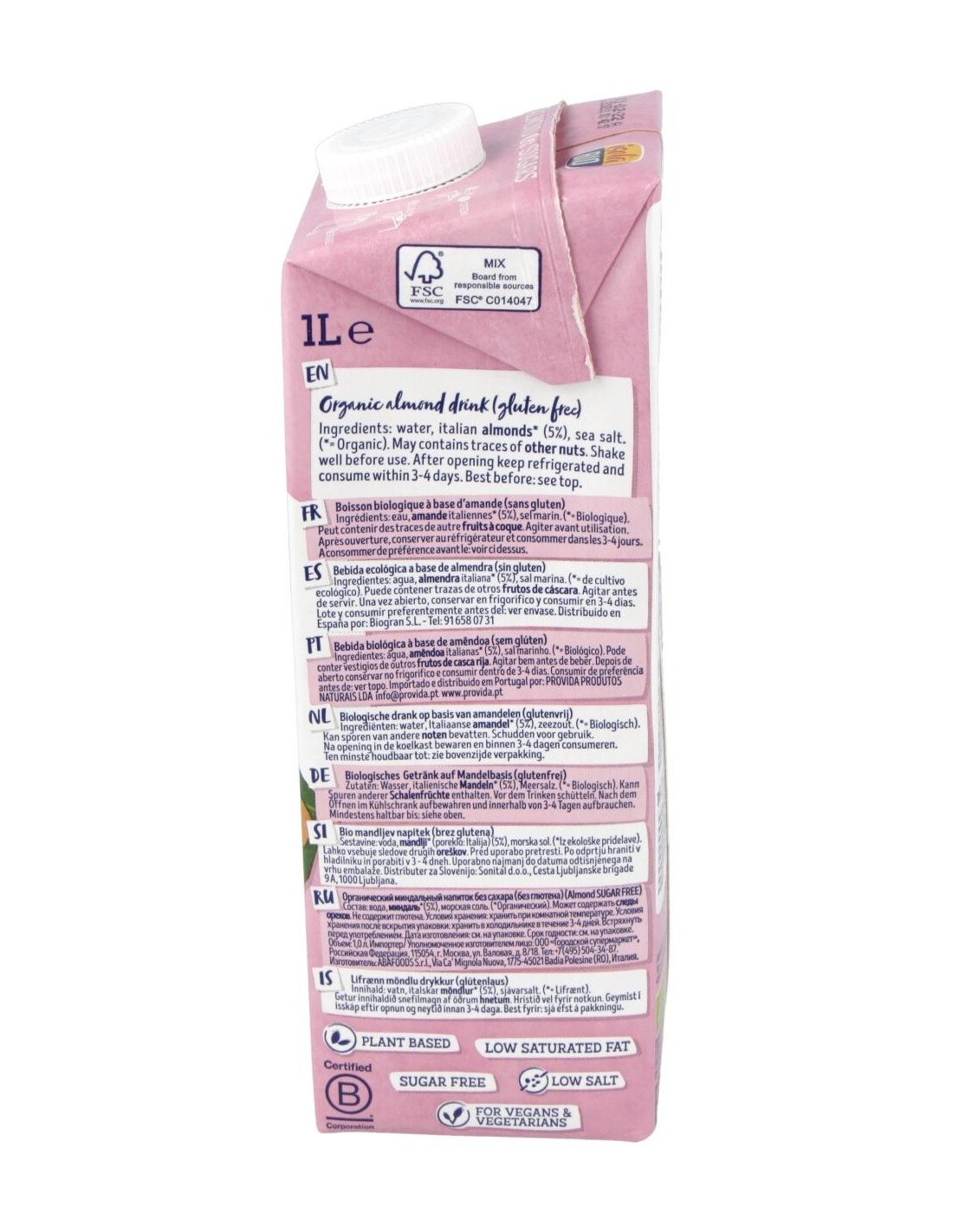 Bebida de Almendra 0 % Azúcares 1L de ISOLA BIO es un tipo de leche de almendras que está fabricada 100 % con ingredientes naturales. Es baja en sal, en azúcar y en grasas saturadas. Es una fuente de calcio que pueden utilizar personas que lleven a cabo la dieta Kosher y es apta para veganos. No contiene aceite de palma ni colorantes, colorantes, gluten. Se puede beber en frío y en caliente así como mezclar con otros ingredientes como cacao en polvo café o cereales. Este producto es ideal para todas aquellas personas que son intolerantes a la lactosa o que siguen dieta. Hasta el momento, no ha tenido contraindicaciones. Puede contener trazas de soja y frutos de cáscara por lo que conviene también mirar los ingredientes para evitar reacciones alérgicas.