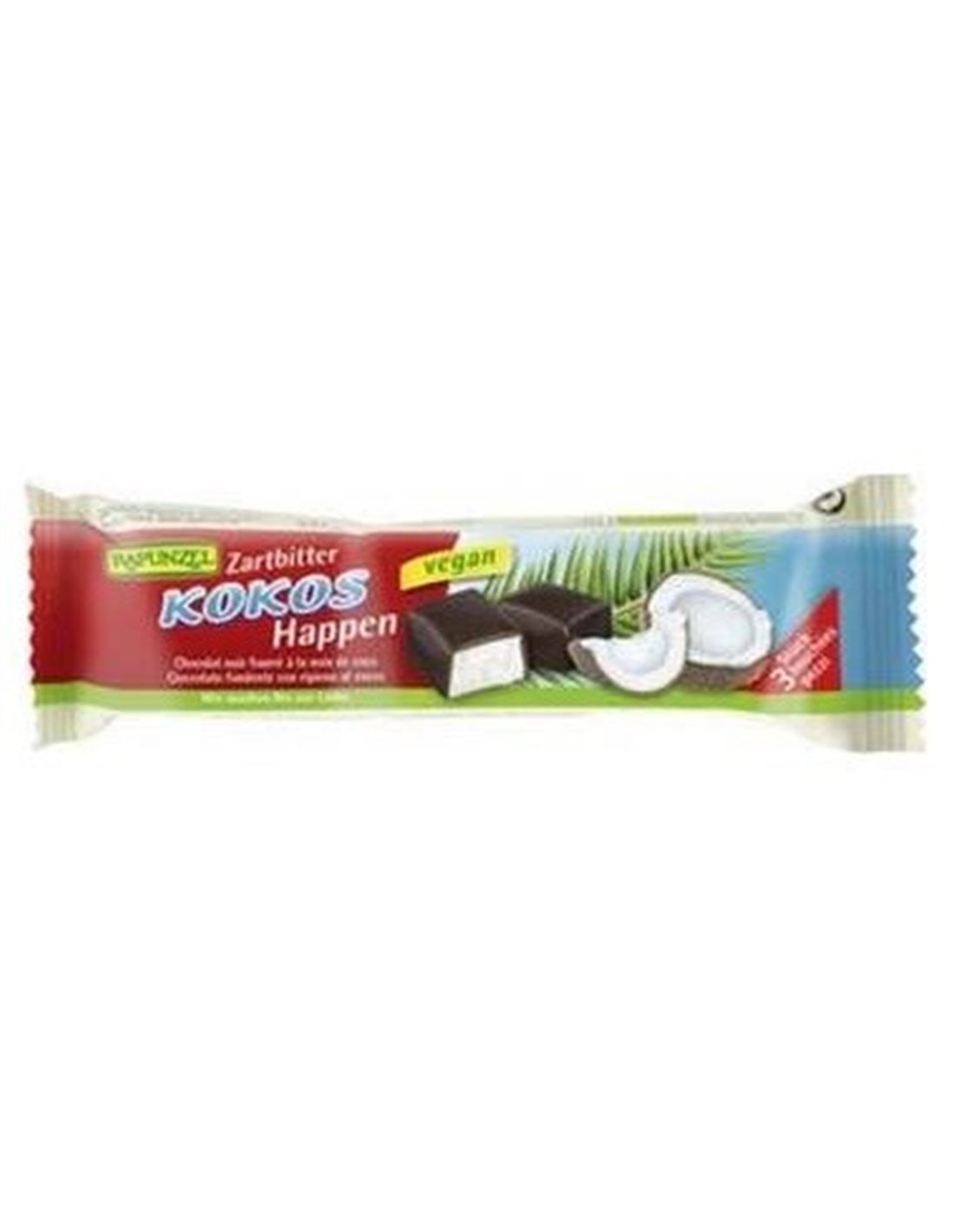Relleno de coco cubierto con chocolate con leche. Combina el chocolate con leche con la frescura exótica del coco. Muy energética.