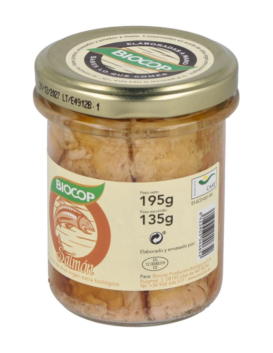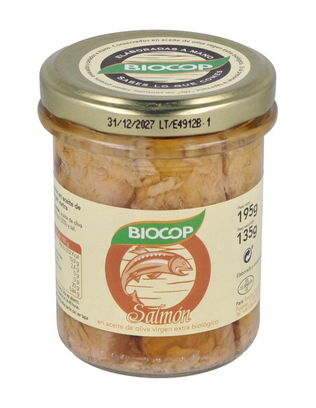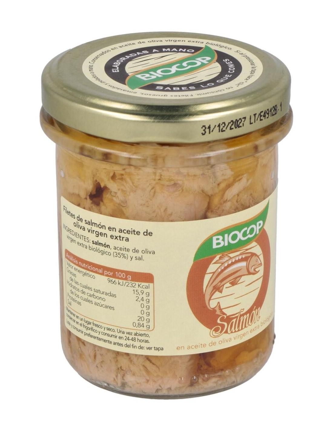 Salmón, aceite de oliva virgen extra*, sal marina. *De agricultura biológica.