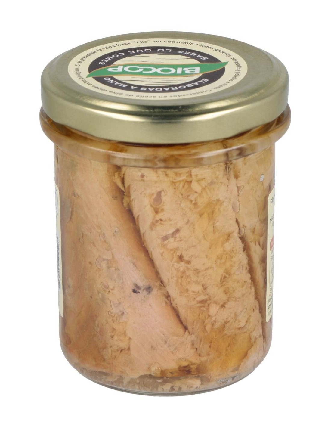 Producto de Biocop a base de carne de pescado graso en aceite de oliva virgen extra biológico. Rico en ácidos grasos omega 3 que contribuyen a la salud del sistema nervioso, cardiovascular y la presión arterial. Aporta 11 gramos de grasa por cada 100 de carne. Contiene proteínas, magnesio, yodo, así como vitaminas A, B y D, los cuales son esenciales para el buen funcionamiento del organismo. Es ideal para ser consumido por toda la familia en cualquier momento del día. Se puede combinar con otros alimentos para conseguir una dieta nutritiva. Su ingesta favorece el equilibrio y la salud del cuerpo humano. Elaborado artesanalmente, a través de pesca extractiva en Canadá. El pescado es un producto alérgeno, por lo que no es apto para aquellos que presentan alergias derivadas de su consumo.