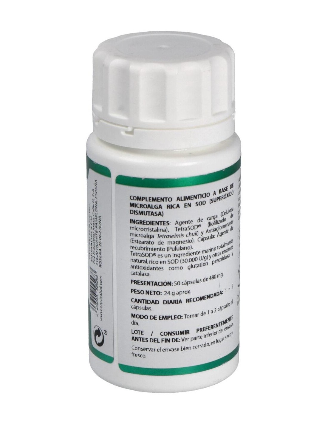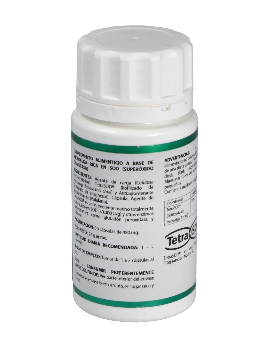TETRASOD® (LIOFILIZADO DE MICROALGA TETRASELMIS CHUII, RICA EN SOD, ACTIVIDAD SUPERÓXIDO DISMUTASA > 30,000 IU/G), 9 MG