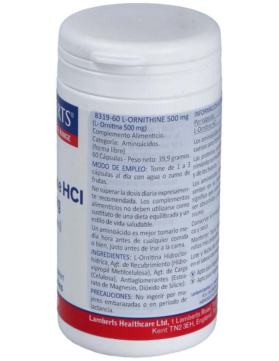 La L-ornitina puede sintetizarse a partir de la arginina, por lo que es considerada como un aminoácido no esencial. Ayuda a activar el crecimiento muscular del cuerpo, aumentando los niveles de las hormonas anabólicas como la insulina y la hormona del crecimiento. En este producto se presenta en su forma libre, lo que permite su máxima absorción y es apto para vegetarianos.