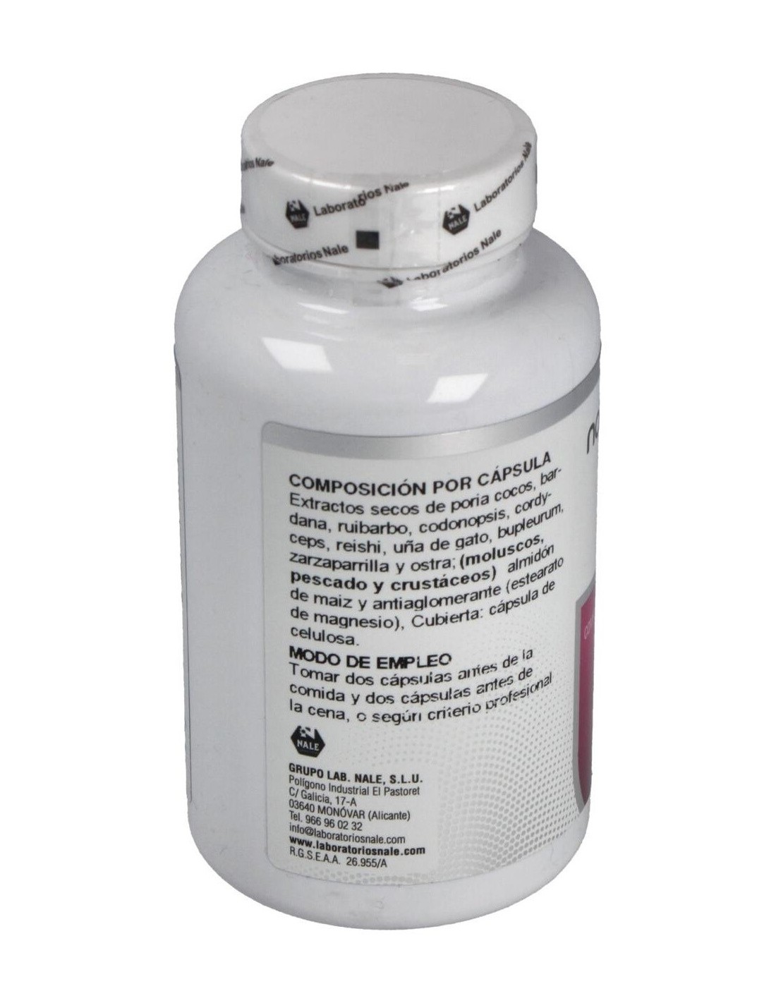 Extractos secos de: Poria cocos: Bardana: Zarzaparrilla: Ruibarbo: Uña de gato: Bupleurum chinense: Reishi: Cordyceps: Ostra: Codopnosis. Almidón de maíz, estearato de magnesio.