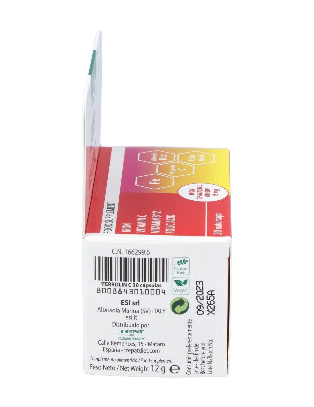 Complemento alimenticio a base de hierro, Vitamina C, Ácido Fólico (Folato) y Vitamina B12, útil para aportar estos nutrientes en caso de carencias alimentarias de aumento de las necesidades orgánicas. La Vitamina B12 contribuye a la formación normal de los glóbulos rojos. El Hierro contribuye, no sólo a la formación normal de los glóbulos rojos, sino también a la producción de la hemoglobina, útil para el transporte de oxígeno a los tejidos del organismo. Apto para veganos y vegetarianos.