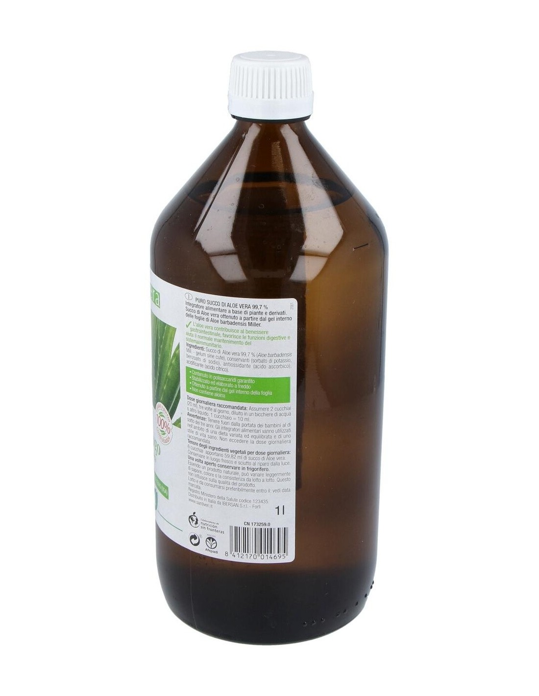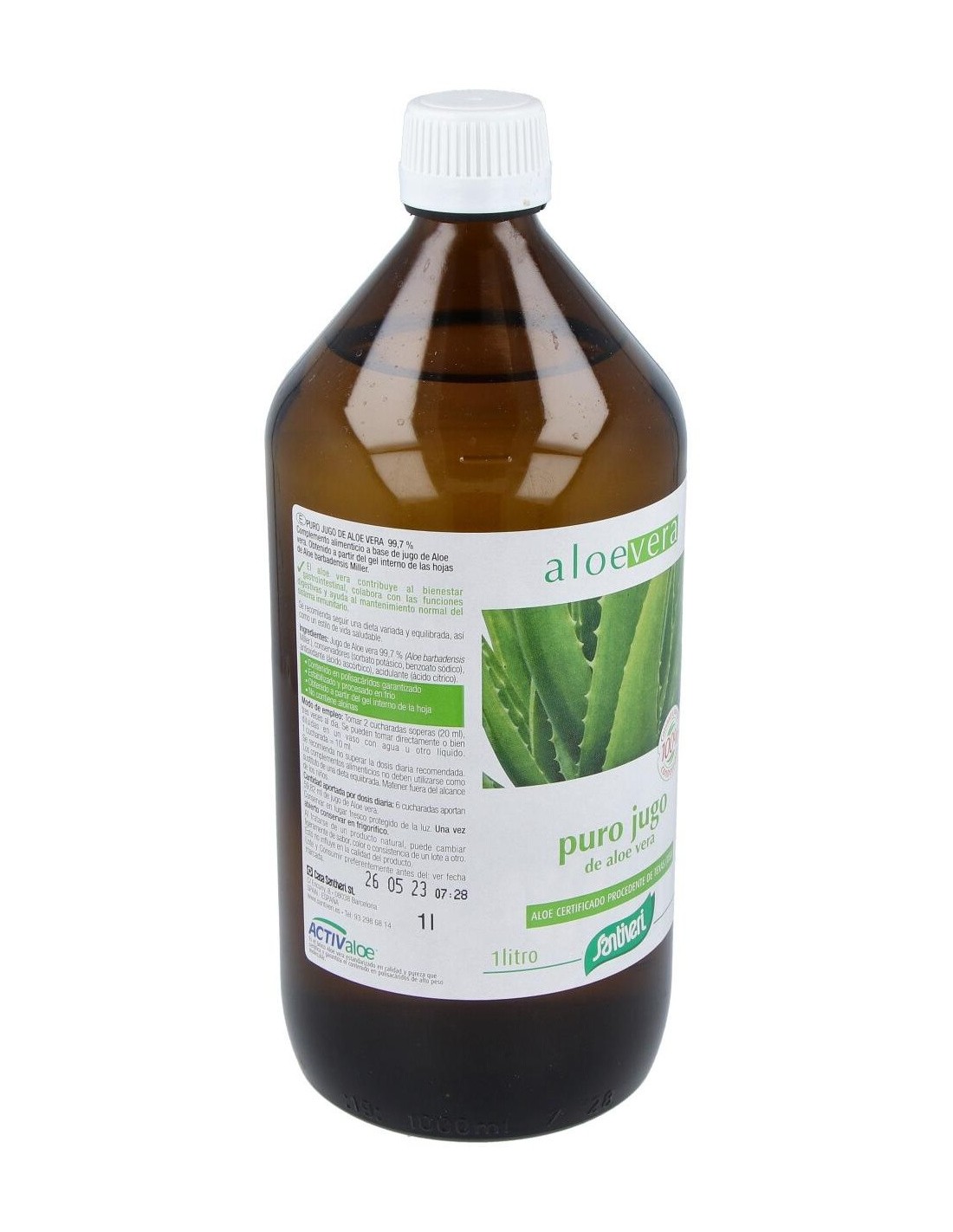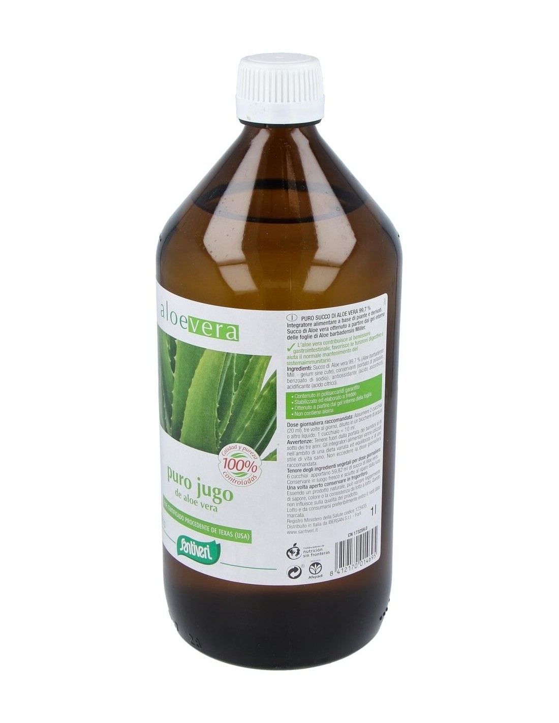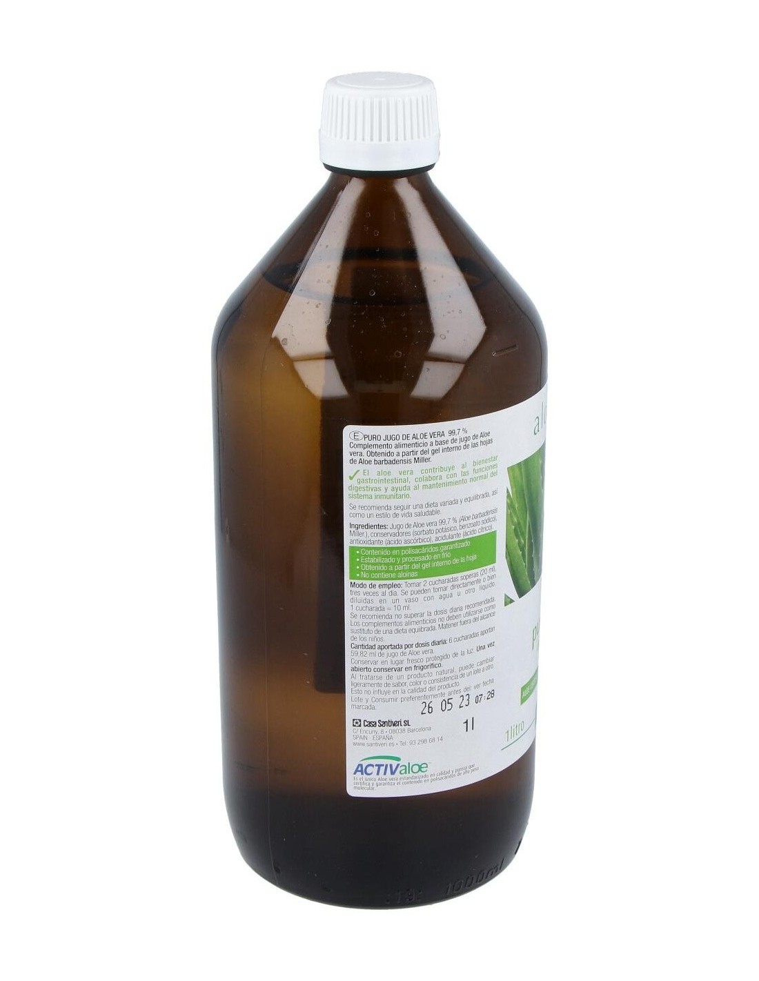 Jugo de Aloe vera L. 99,7% (Aloe barbadensis Miller), conservadores (sorbato potásico, benzoato sódico), antioxidante (ácido ascórbico), acidulante (ácido cítrico).