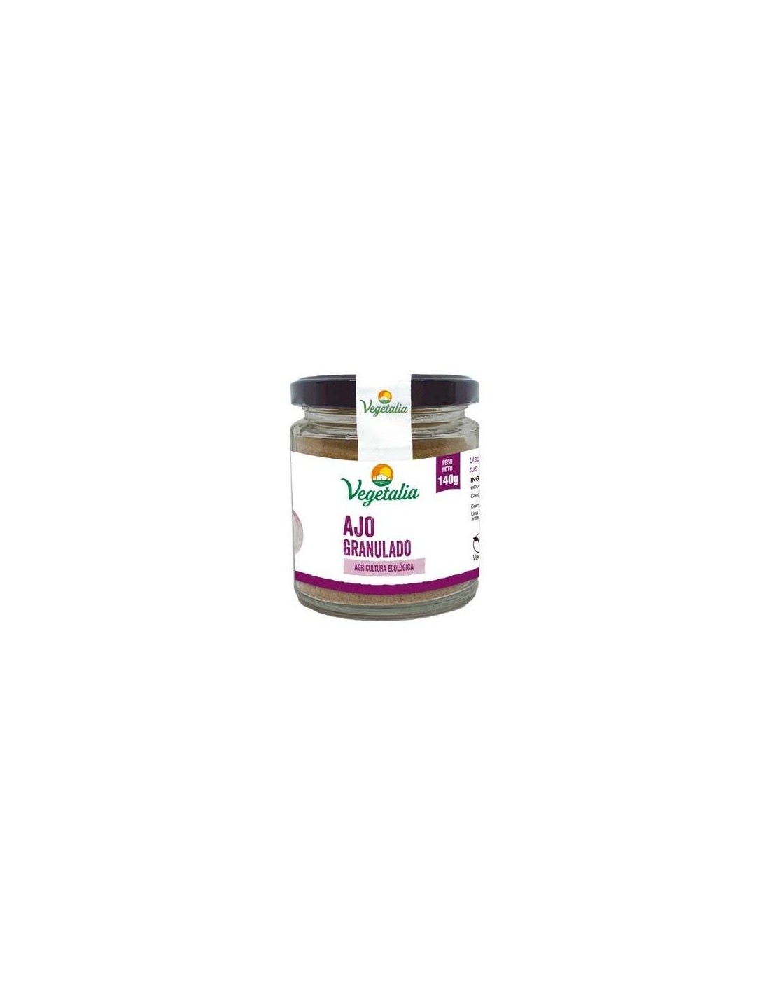 Ajo granulado* \ \ Valor nutricional por 100 g:\ Valor energético:1386 kJ/ 331 kcal\ Grasas:0.73 g\ - de las cuales saturadas:0.25 g\ Hidratos de carbono:72.73 g\ - de los cuales azúcares:2.43 g\ Fibras:9 g\ Proteínas:16.55 g\ Sal:60 g\ \ *De agricultura ecológica.
