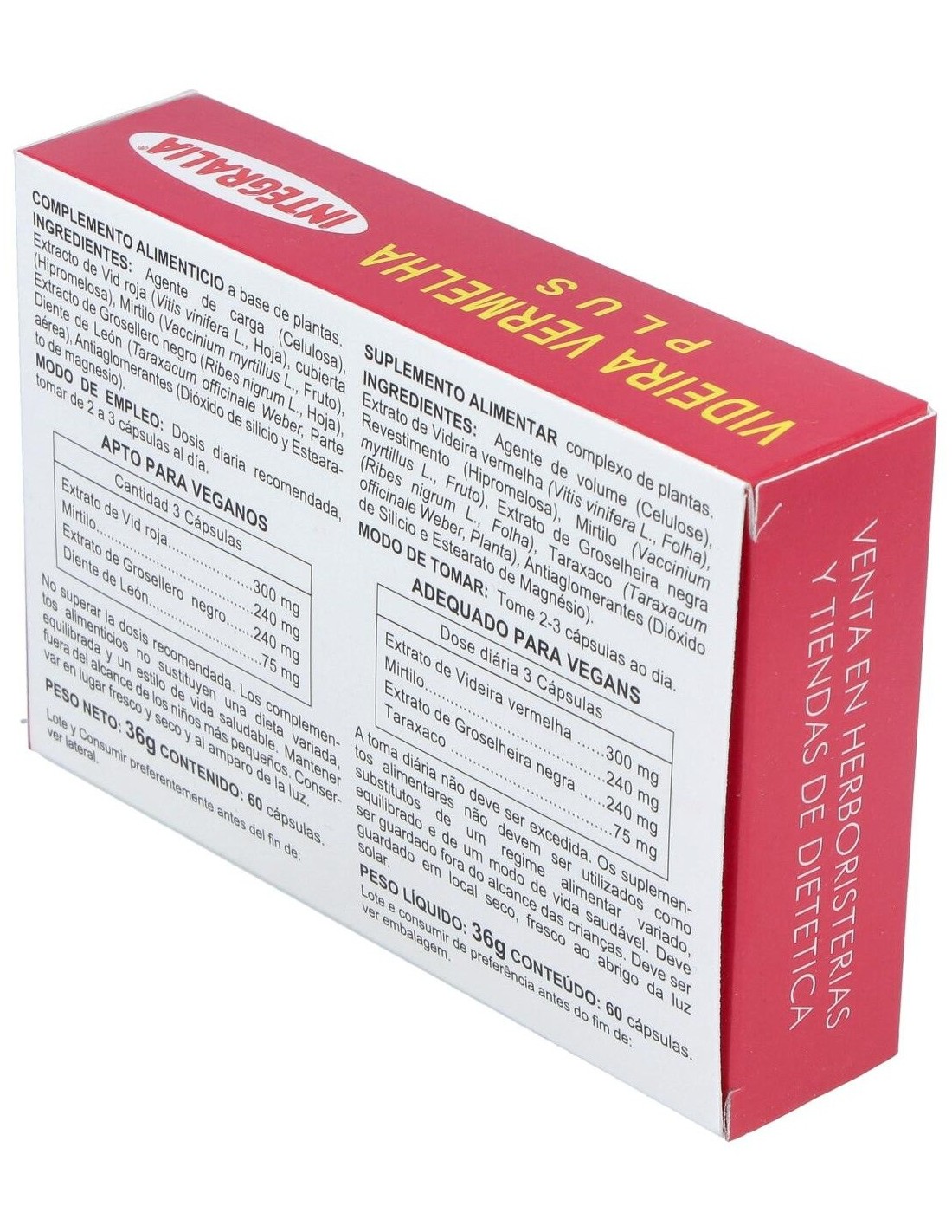 300 mg de vid roja, 240 mg de mirtilo, 240 mg de extracto de grosellero negro, 75 mg de diente de león.