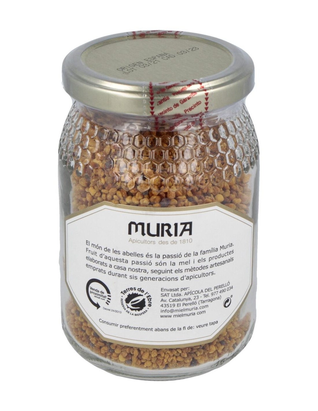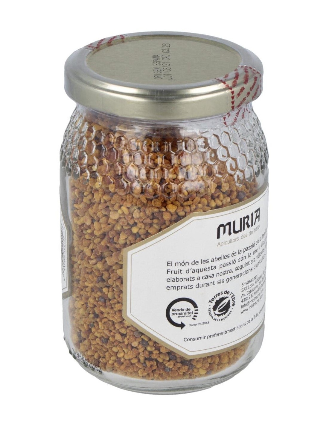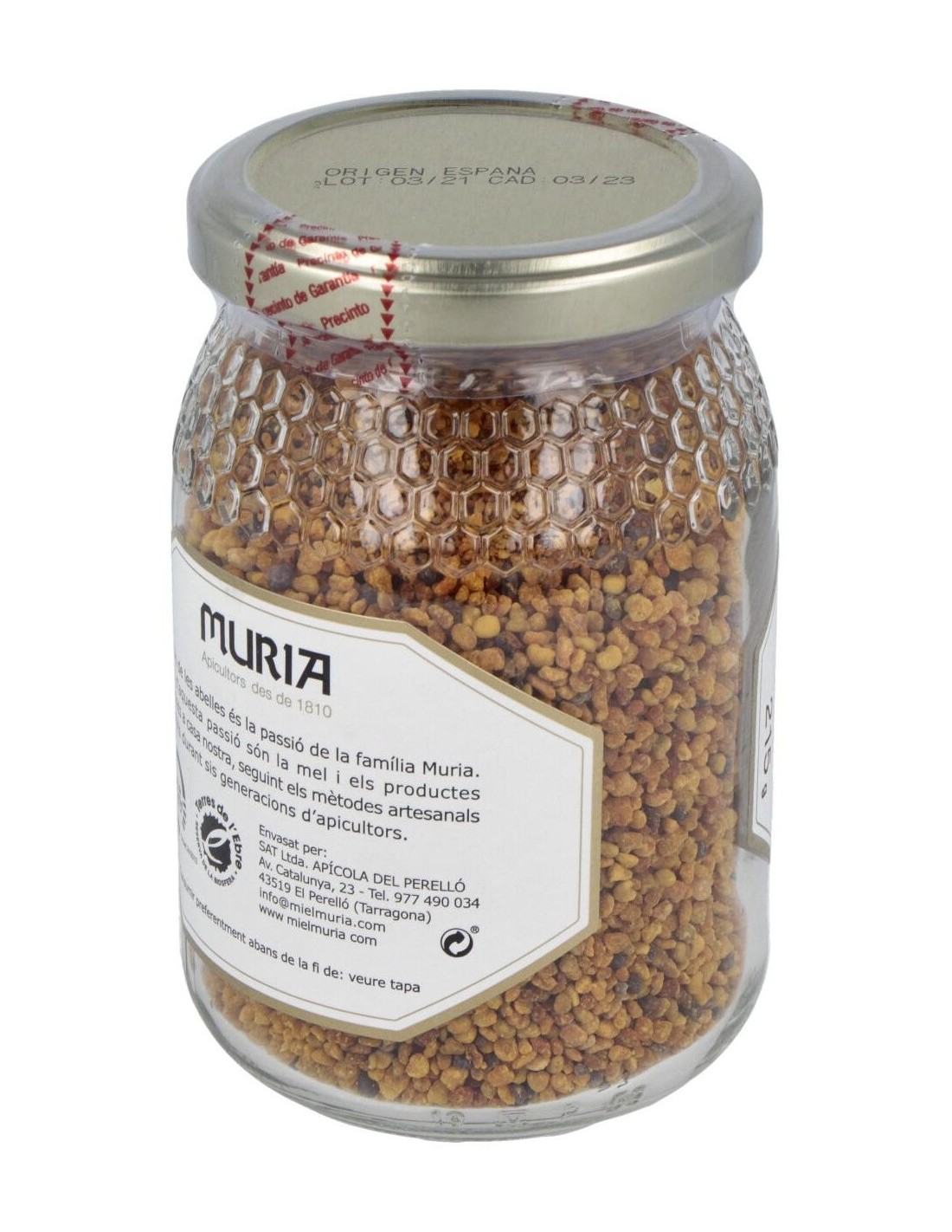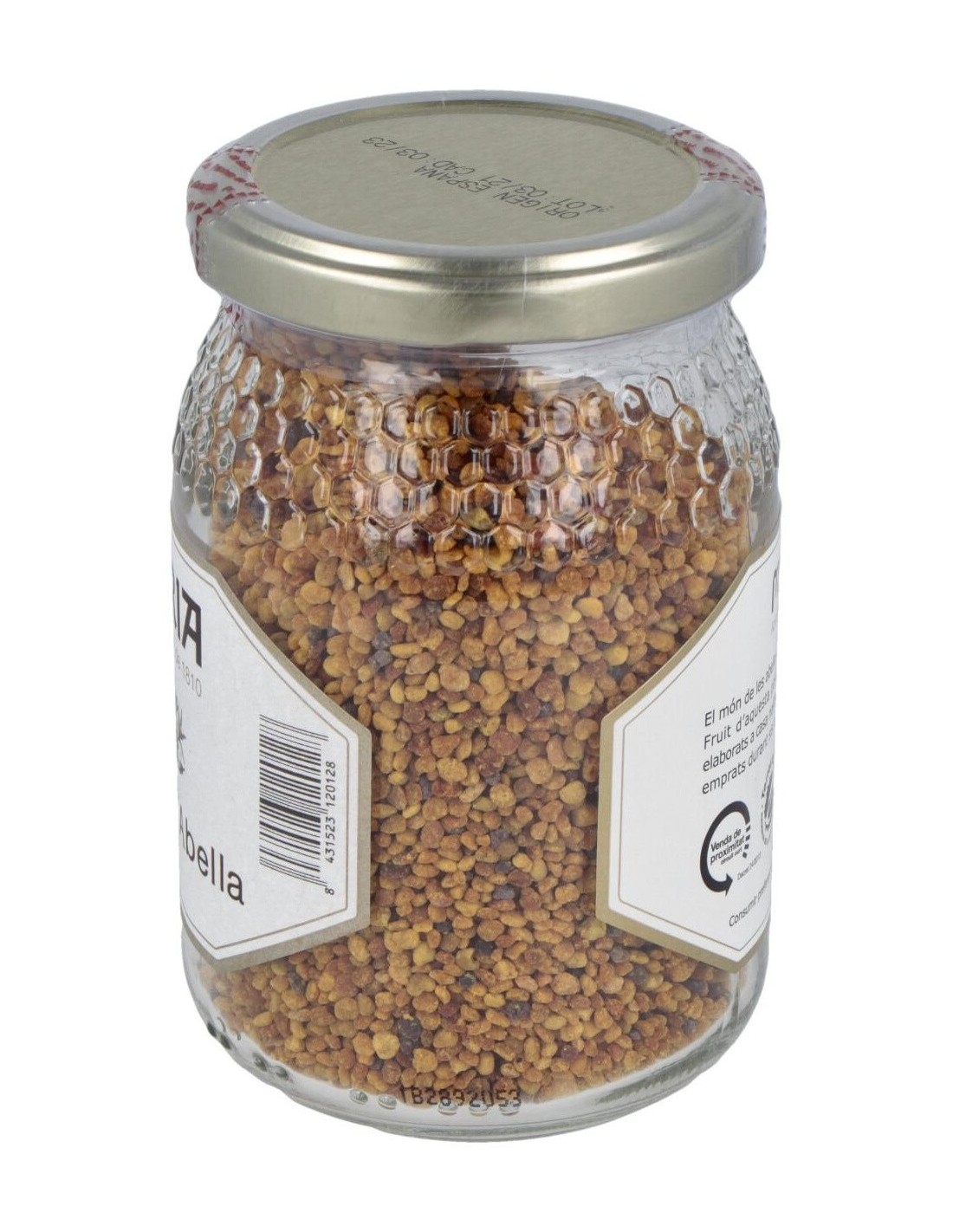 Bote de polen de abejas con un agradable aroma floral y terroso, que se puede usar directamente en recetas, o bien para maceración en líquidos fríos o tibios azucarados durante 15 minutos, para ser usado como ingrediente en la elaboración de recetas de cocina, preparados alimenticios o para realizar remedios caseros y cosméticos. Se recomienda conservar a temperatura ambiente en un lugar fresco y seco, lejos de fuentes de calor y evitar el contacto directo de la luz solar.