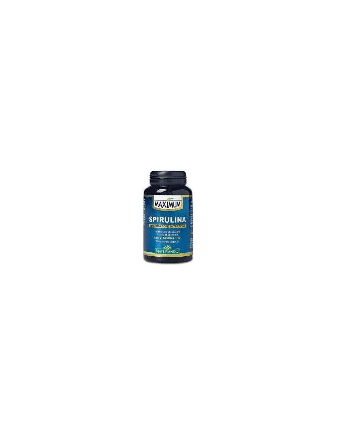 Espirulina Thallo polvo (Spirulina Maxima) tIt. 60 % en proteínas, 0,3 % en carotenoides, 1 % en clorofila, 8 % en ficocianinas, Hidroxipropilmetilcelulosa, Antiaglomerante: Sales de magnesio de ácidos grasos: Vitamina B12 (cianobalamina).